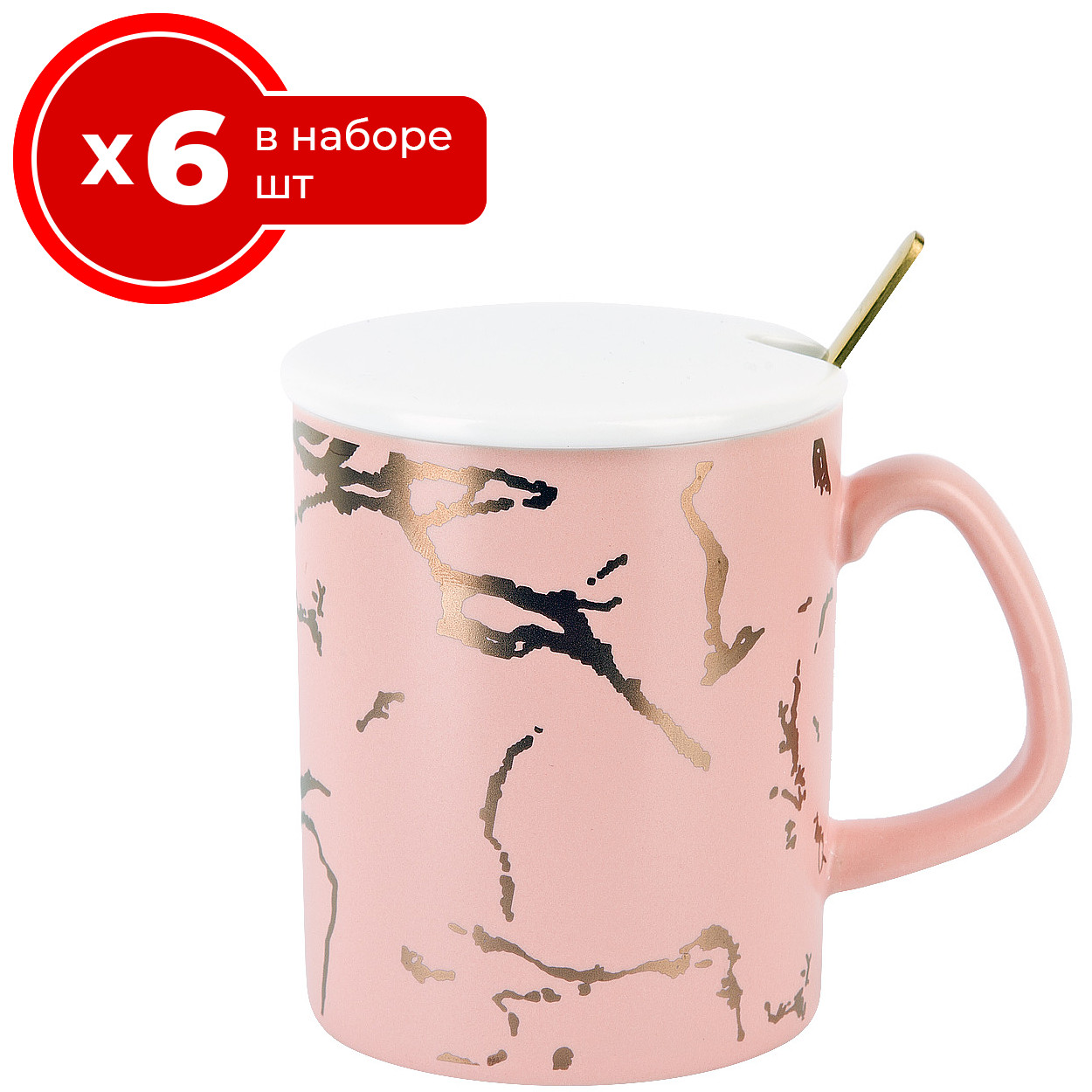 Набор из 6 кружек Nouvelle мрамор 380 мл, фарфор, чашки для чая и кофе 6 шт