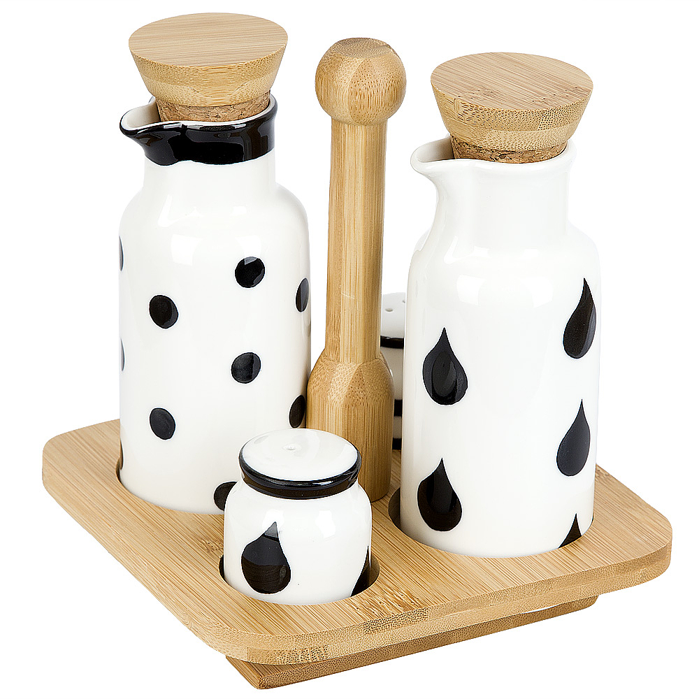 Специи, набор 2пр+бутылки для масла и уксуса на бамбуковой подставкеbianco
