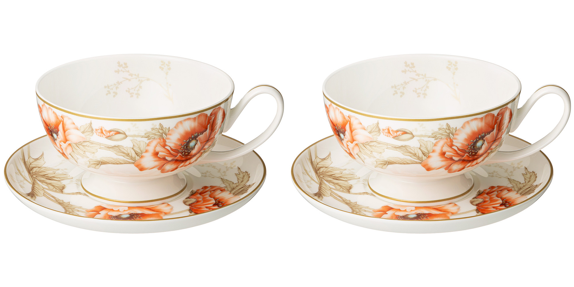 Чайный набор посуды на 2 персоны 350 мл Lefard антик 4 предмета, 2 чашки и блюдца, подарочный фарфор