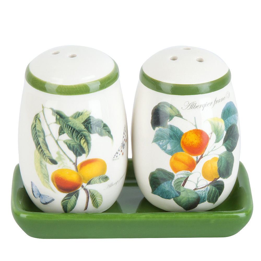 Набор для специй солонка/ перечница Fruit Garden 11х6х8,5см (на керамической подставке)