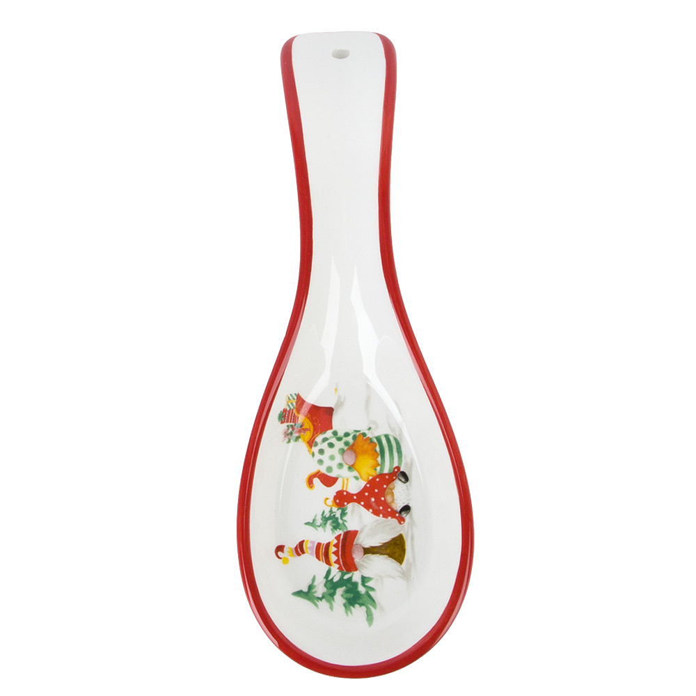 Подставка под ложку рождественские гномы 23х8см (керамика) (подарочная упаковка). Представляем вам удивительную коллекцию посуды Рождественские гномы. Изготовленная из керамики, эта коллекция предлагает широкий выбор посуды для вашей кухни. Каждый предмет коллекции имеет глянцевую поверхность снаружи, что придает ему элегантный и изысканный вид. Однако, чтобы сохранить красоту и качество этой посуды, необходимо соблюдать несколько правил ухода. Не рекомендуется использовать абразивные моющие средства, чтобы избежать появления царапин на поверхности. Также, данную посуду не следует использовать в микроволновой печи. Каждый предмет коллекции поставляется в индивидуальной упаковке, что обеспечивает его безопасность во время доставки и хранения. Это также делает эту коллекцию отличным подарком для ваших близких и друзей. Погрузитесь в атмосферу Рождества с коллекцией посуды Рождественские гномы. Ее прекрасный дизайн не оставят вас равнодушными. Покупайте сейчас и создайте уютную и праздничную атмосферу в своем доме. Подставка под ложку Рождественские гномы 23х8см (керамика) (подарочная упаковка) Материал: Керамика Упаковка: Цветная коробка Цвет основной: Белый Комплектация: Блюдо - 1 шт Использование в СВЧ: Нет Мытье в посудомоечной машине: Нет Рисунок: Гном  развернуть описание ▼