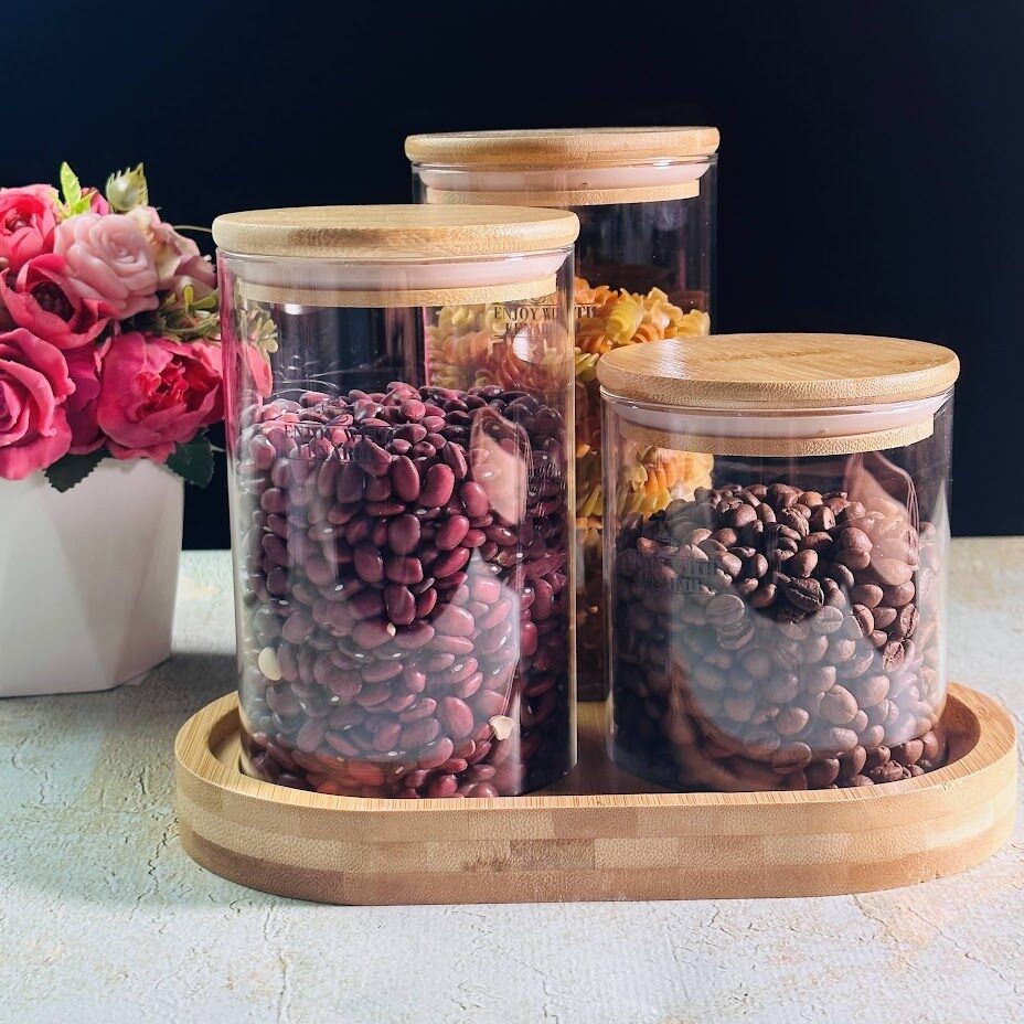 Набор из 3 банок для сыпучих продуктов 700/900/1050мл. на подставке в подарочной упаковке стекло Lenardi