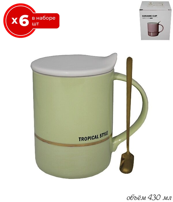 Набор из 6 кружек Lenardi Tropical 430 мл, фарфор, чашки для чая и кофе 6 шт