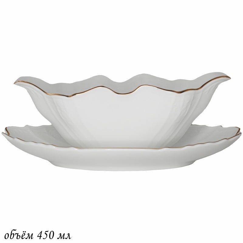 2шт соусник с блюдцем 24,5см Maria Gold в подарочной упаковке ак фарфор Lenardi