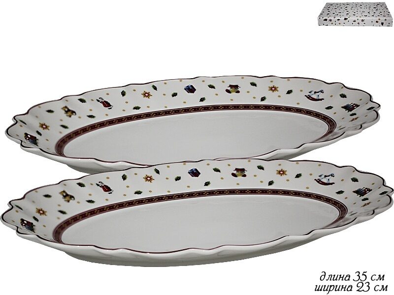 Набор из 2 овальных блюд 35см. новый год в подарочной упаковке фарфор Lenardi