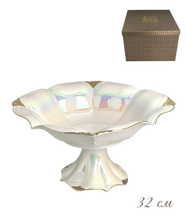 2шт фруктовница 32см перламутр на ножке в подарочной упаковке Lenardi
