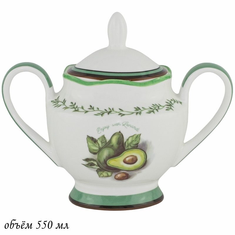 2шт сахарница 550 мл авокадо в подарочной упаковке фарфор lenardi. Сахарница 550 мл Упаковано в подарочную коробку. Коллекция «АВОКАДО» выполнена из белого фарфора. Стильный и модный дизайн с авокадо насыщенного зеленого цвета, флористическая обводка. Коллекция состоит из тарелок, овальных блюд, салатников, чайных и кофейных наборов Материал: фарфор Можно мыть в посудомоечной машине и использовать микроволновой печи.  развернуть описание ▼