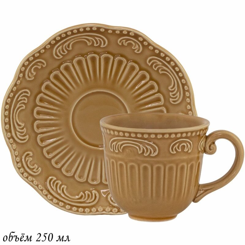 4шт чашка с блюдцем 250 мл бавария карамель в подарочной упаковке керамика Lenardi