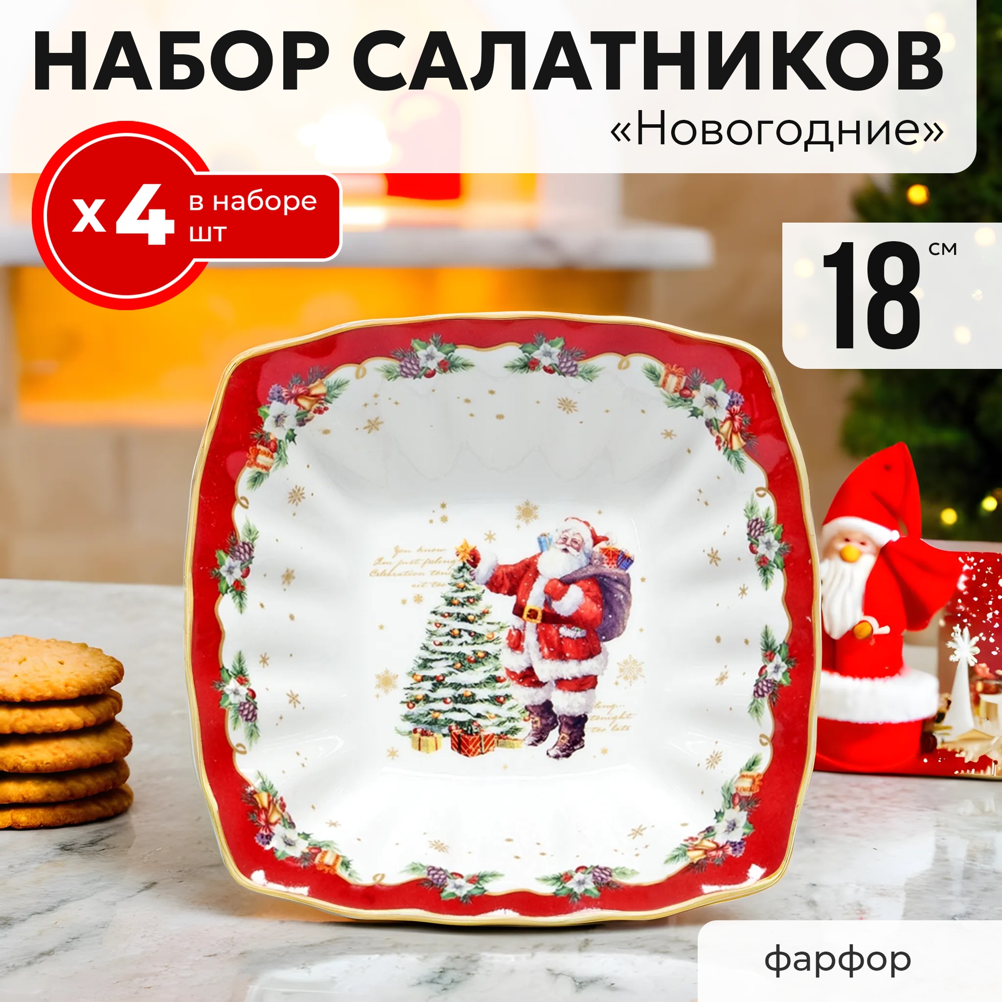 Набор салатников 4 шт новогодние 18 см Lenardi