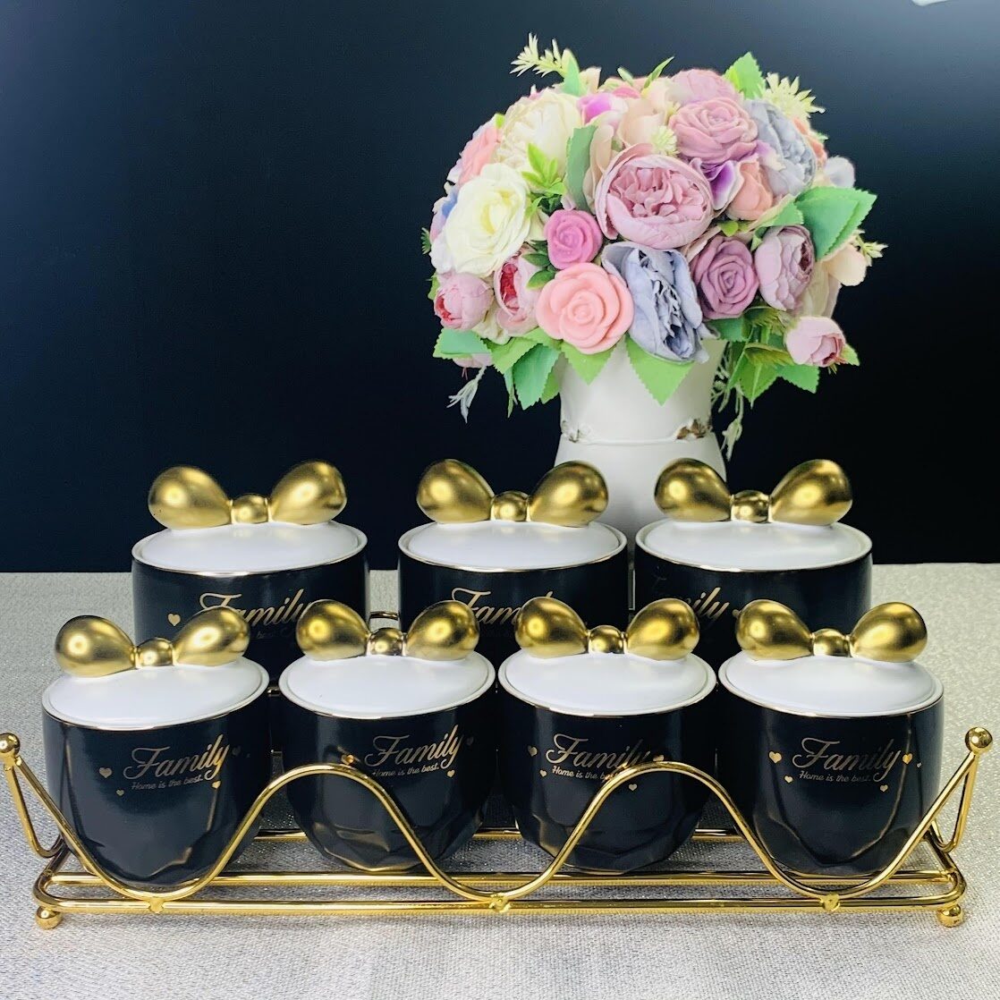 Набор из 7 банок для сыпучих на подставке в подарочной упаковке фарфор Lenardi