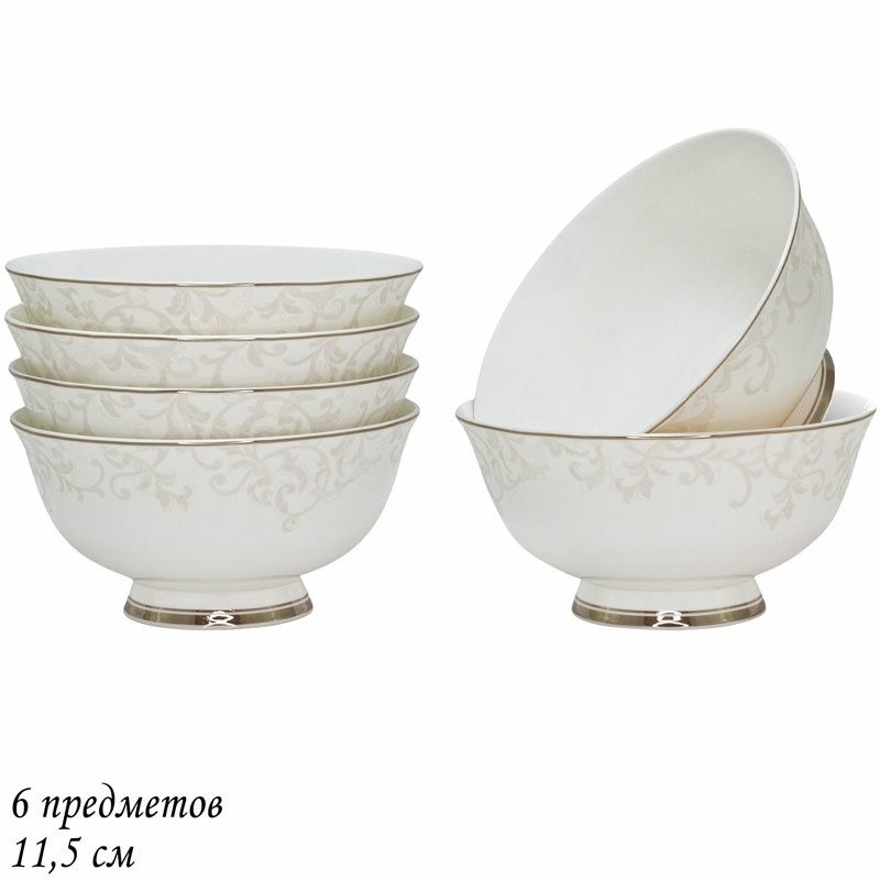 Набор из 6 салатников 11,5см серый шелк в подарочной упаковке костяной фарфор Lenardi