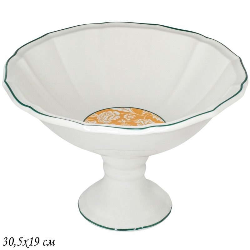 2шт фруктовница 30,5х19см адонис на ножке в подарочной упаковке фарфор lenardi. Фруктовница 30,5х19 см Упаковано в подарочную коробку. Коллекция «АДОНИС» выполнена из белого фарфора. Цветочный дизайн на терракотовом фоне с темно зеленой обводкой идеально сочетаются. Коллекция состоит из тарелок, овальных блюд, салатников, фруктовниц, тортовниц, чайных и кофейных наборов Материал: фарфор Можно мыть в посудомоечной машине и использовать микроволновой печи.  развернуть описание ▼