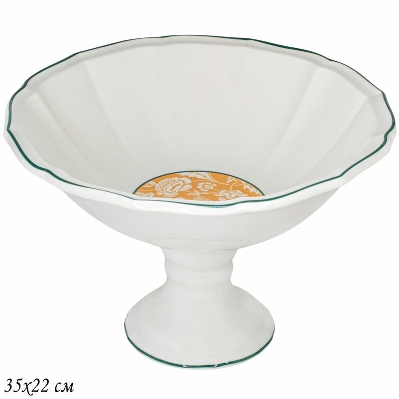 2шт фруктовница 35х22см адонис на ножке в подарочной упаковке фарфор lenardi. Фруктовница 35х22см Упаковано в подарочную коробку. Коллекция «АДОНИС» выполнена из белого фарфора. Цветочный дизайн на терракотовом фоне с темно зеленой обводкой идеально сочетаются. Коллекция состоит из тарелок, овальных блюд, салатников, фруктовниц, тортовниц, чайных и кофейных наборов Материал: фарфор Можно мыть в посудомоечной машине и использовать микроволновой печи.  развернуть описание ▼