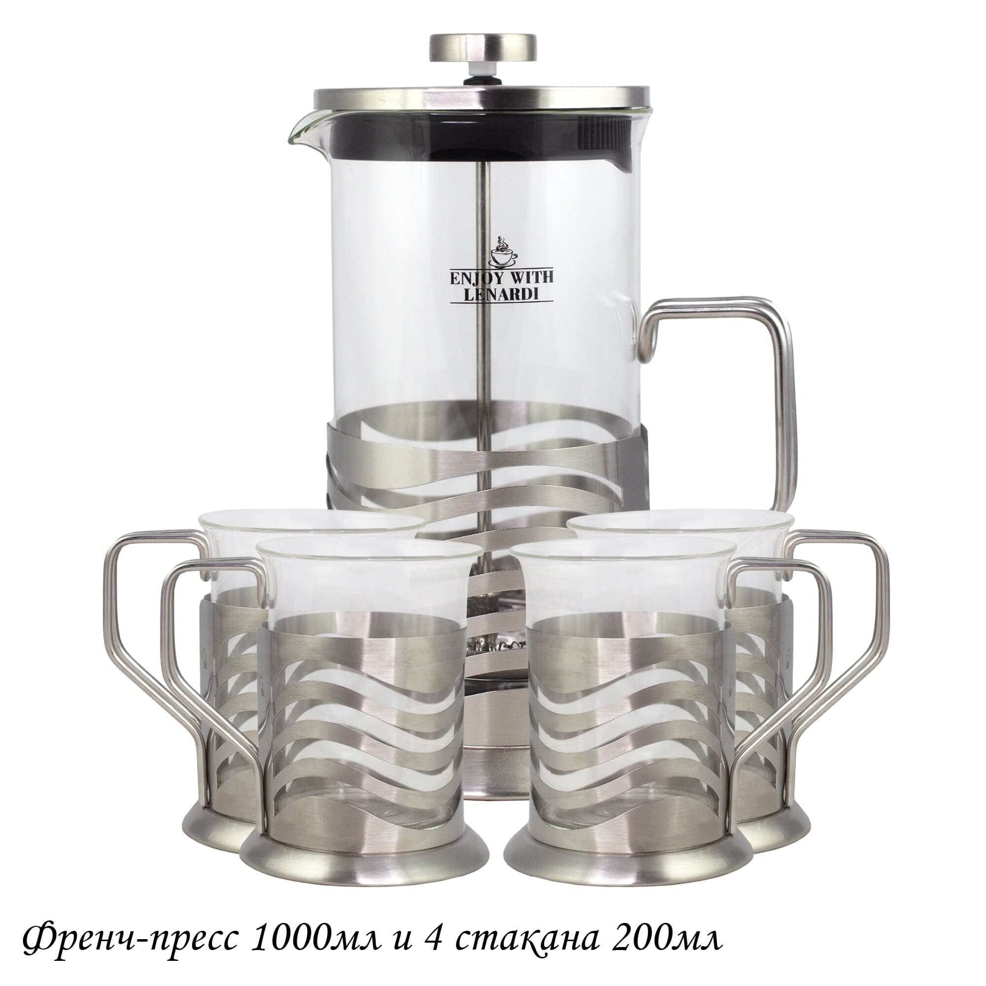 Шт френч-пресс 1000мл. и 4 стакана 200мл. в подарочной упаковке стекло Lenardi