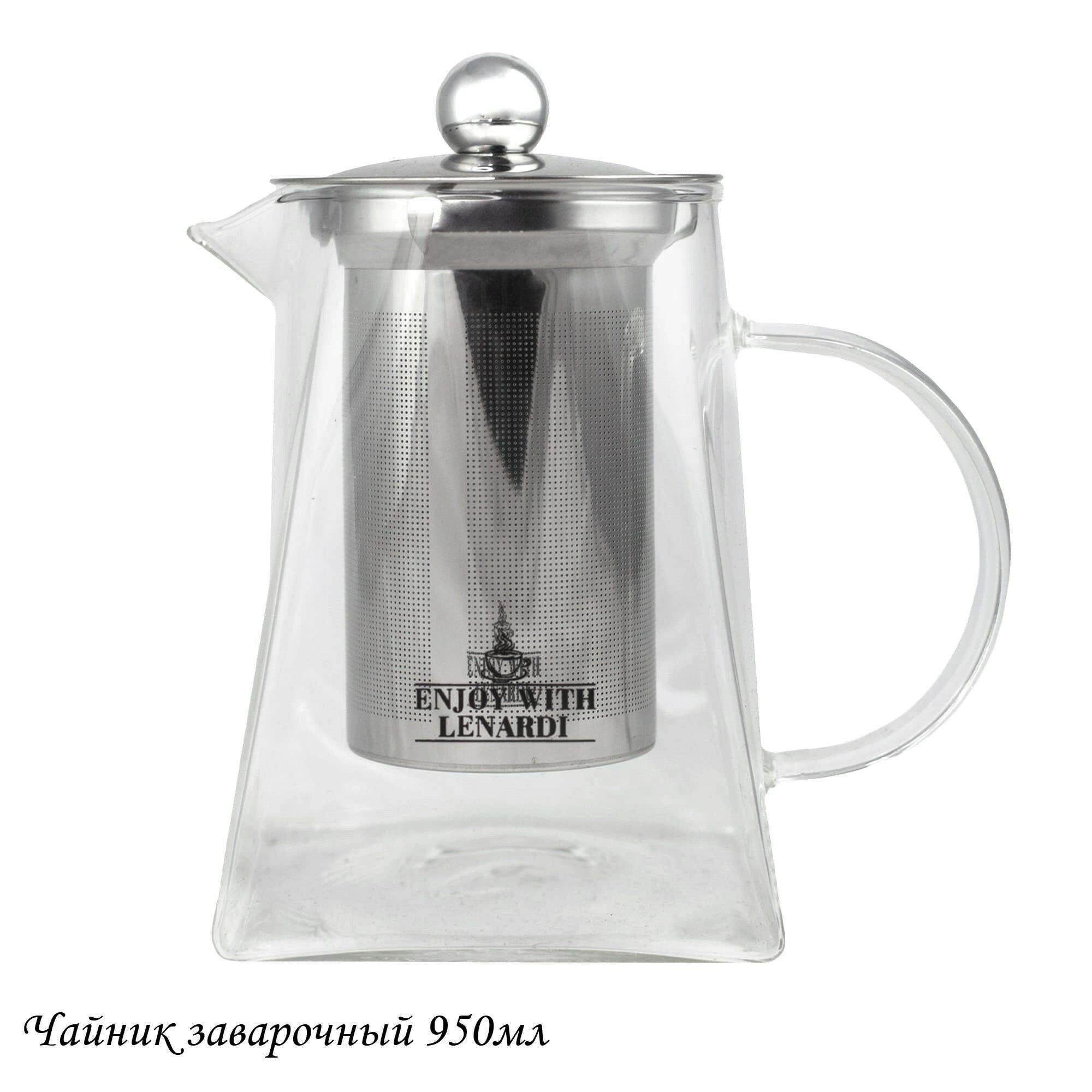 Чайник заварочный 950мл. в подарочной упаковке стекло Lenardi