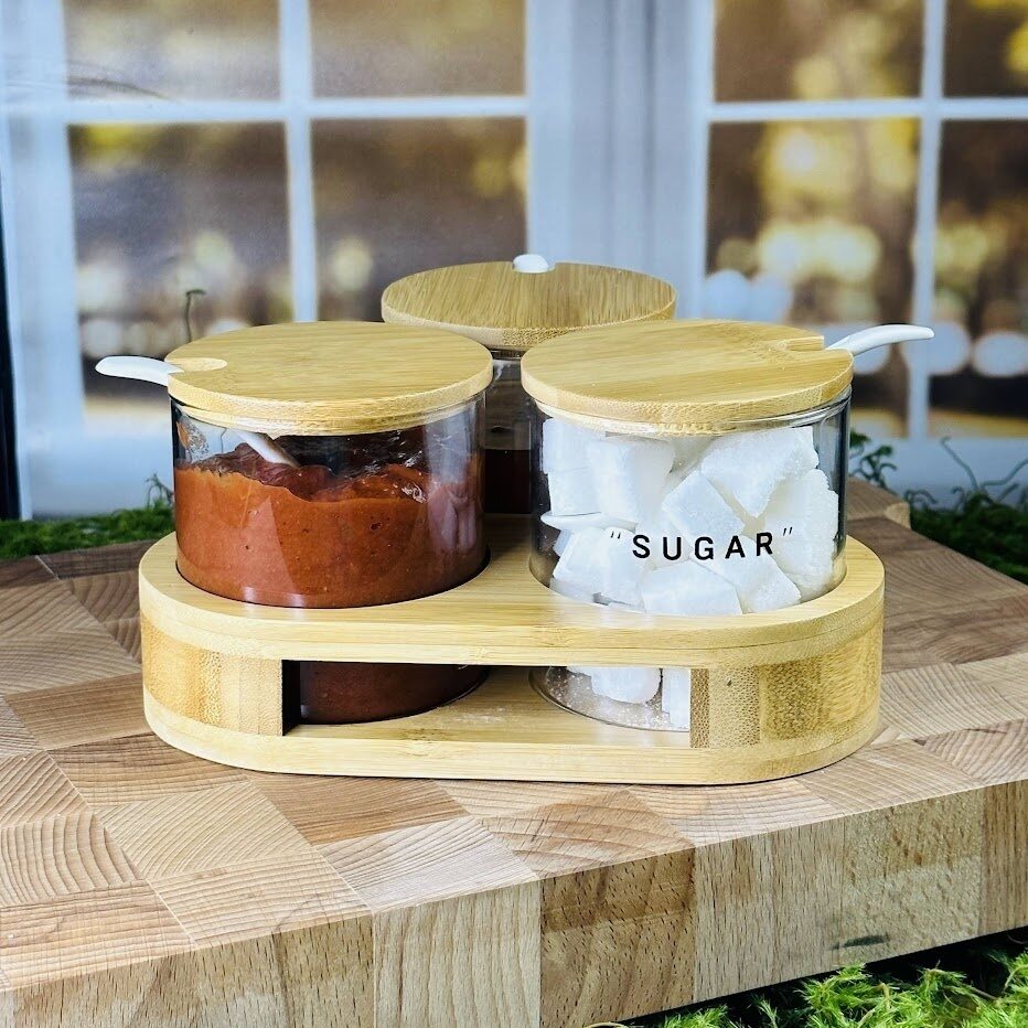 Набор для специй 3пр. с ложками на подставке в подарочной упаковке стекло Lenardi