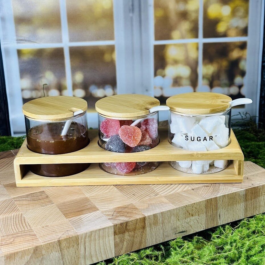 Набор для специй 3пр. с ложками на подставке в подарочной упаковке стекло Lenardi