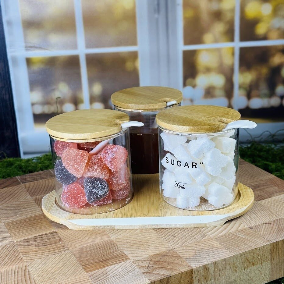 Набор для специй 3пр. с ложками на подставке в подарочной упаковке стекло Lenardi