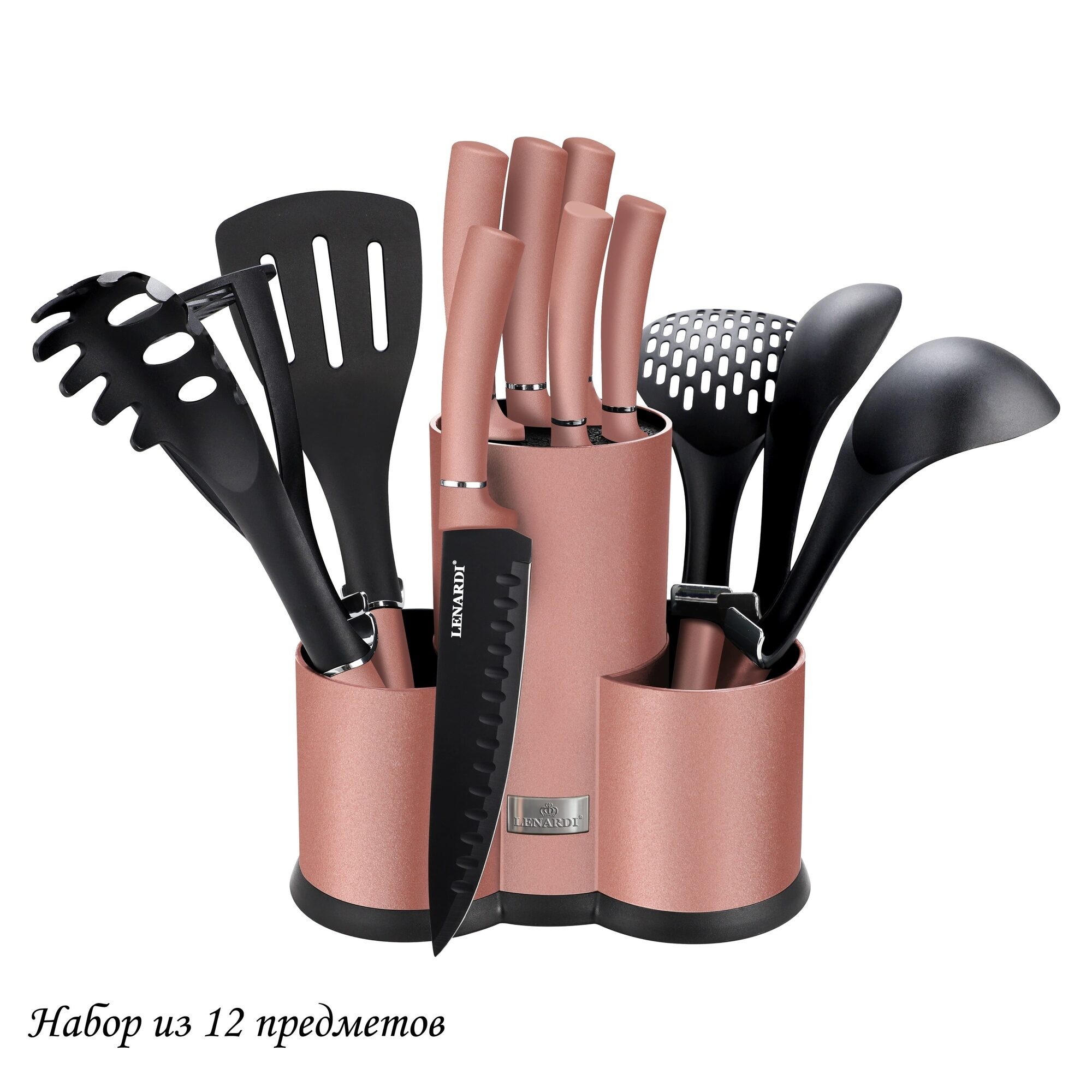 Набор ножей и кухонных принадлежностей 12пр. на подставке в подарочной упаковке нержавеющая сталь Lenardi