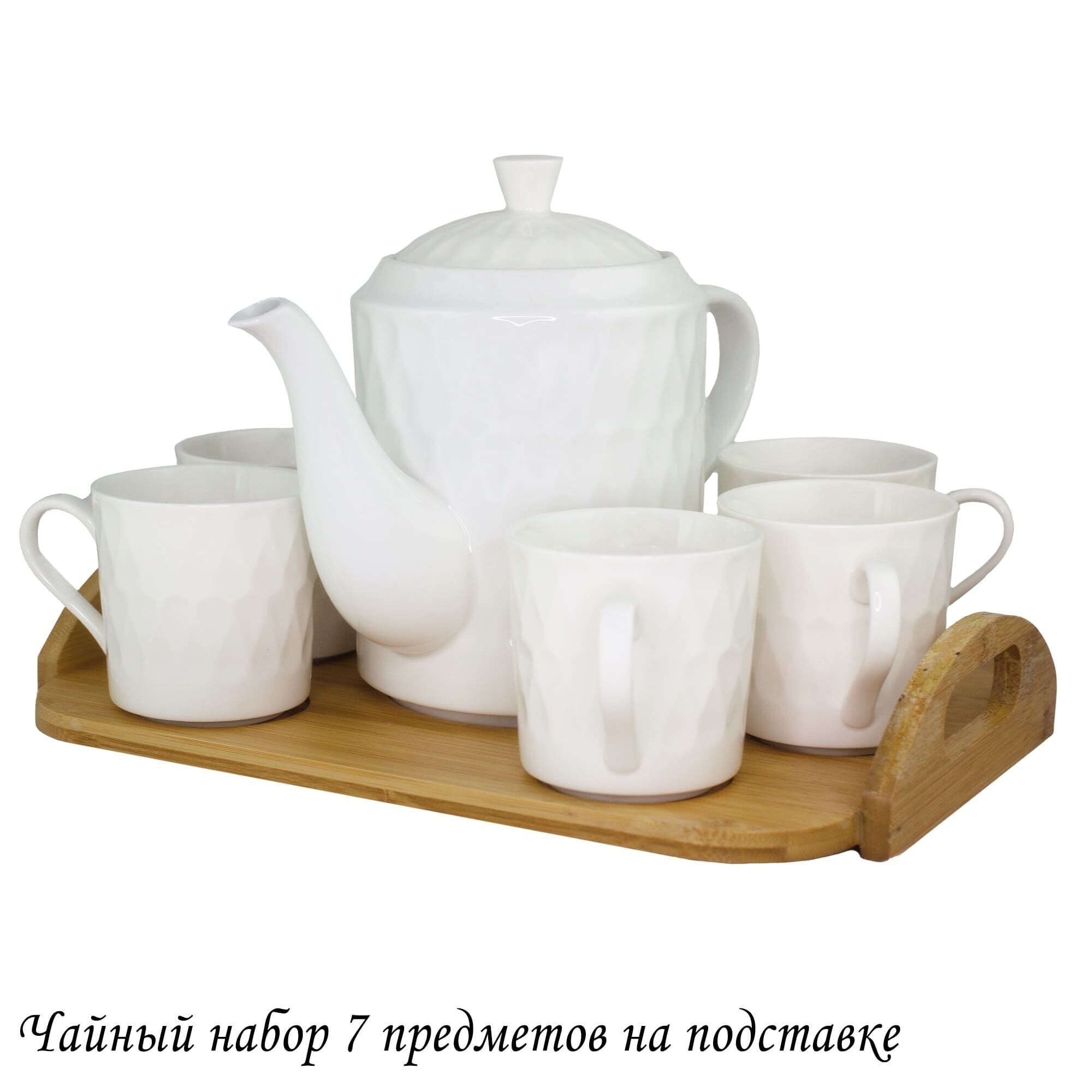 Чайный набор 7 предметов 300 мл Bamboo на подставке в подарочной упаковке фарфор,бамбук Lenardi