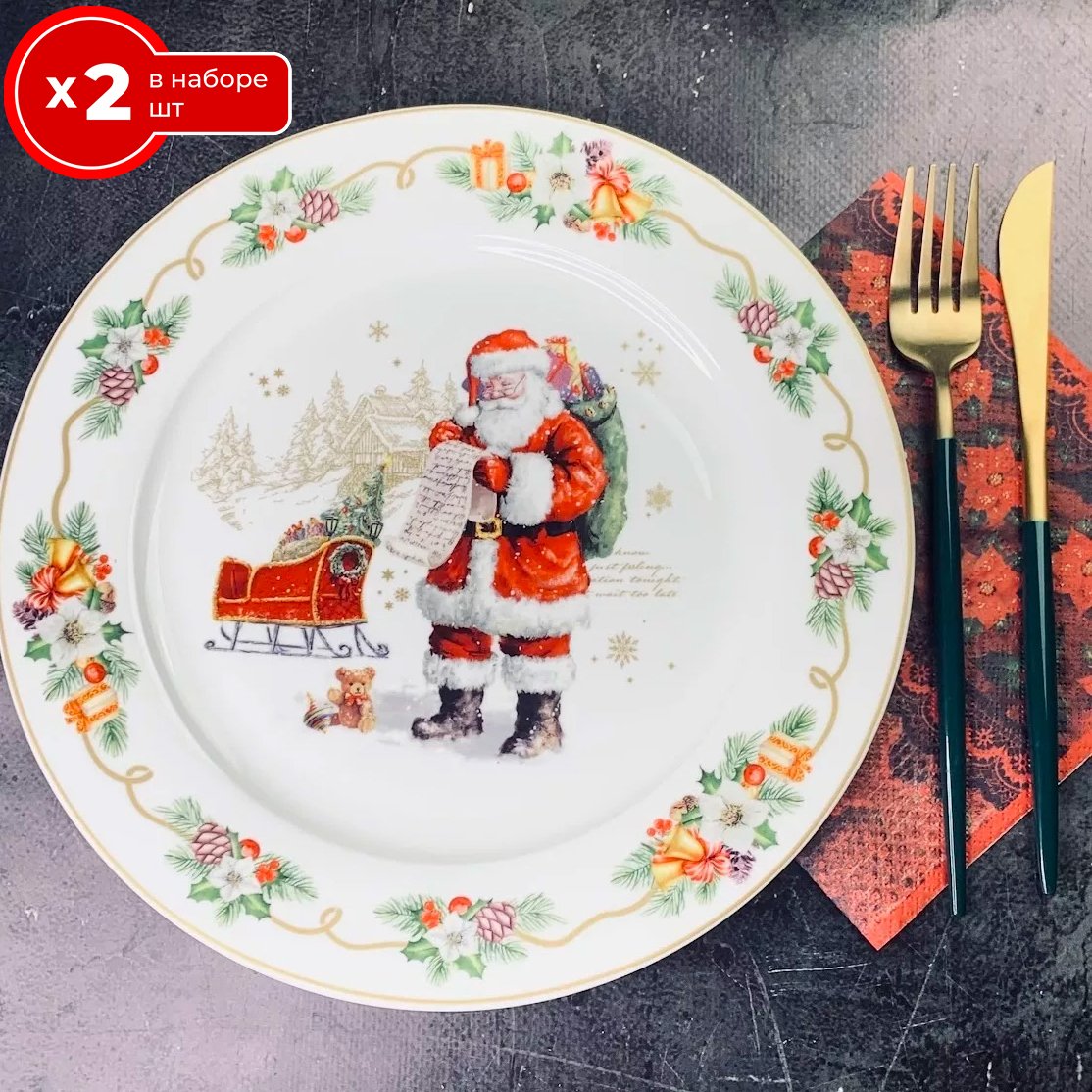 Набор сервировочных обеденных тарелок 2 шт 27 см Lenardi новогодний, фарфор, столовая мелкая, закусочная белая, для подачи блюд