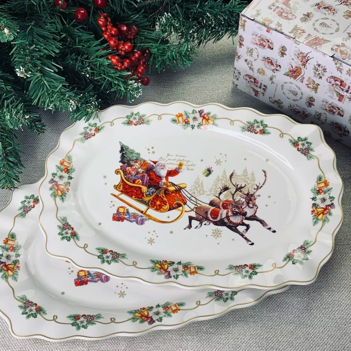 Набор из 2 овальных блюд 30,5см новый год в подарочной упаковке фарфор Lenardi