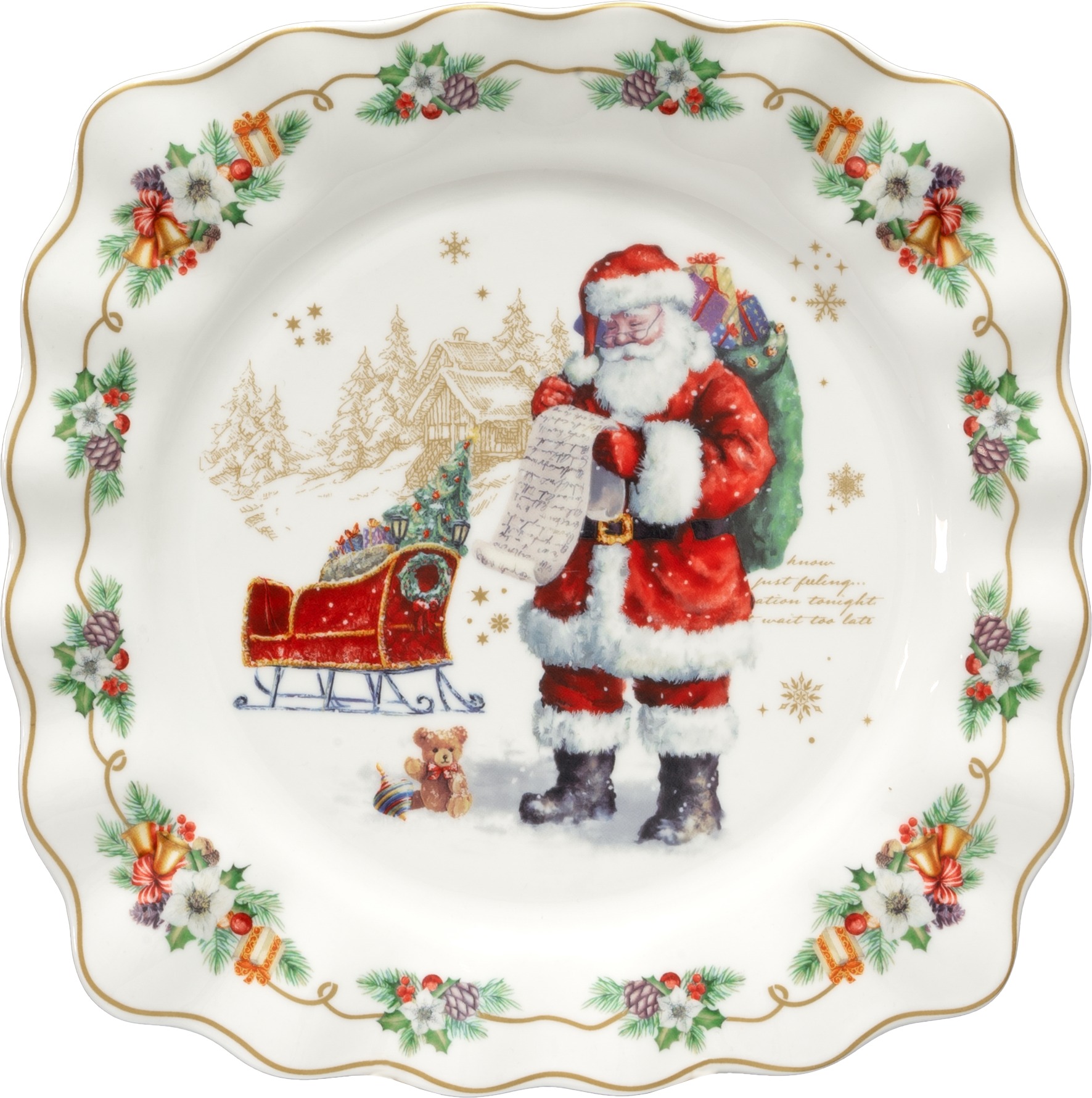 Тарелка десертная закусочная 19 см Lenardi новый год, фарфор, мелкая, 1 шт