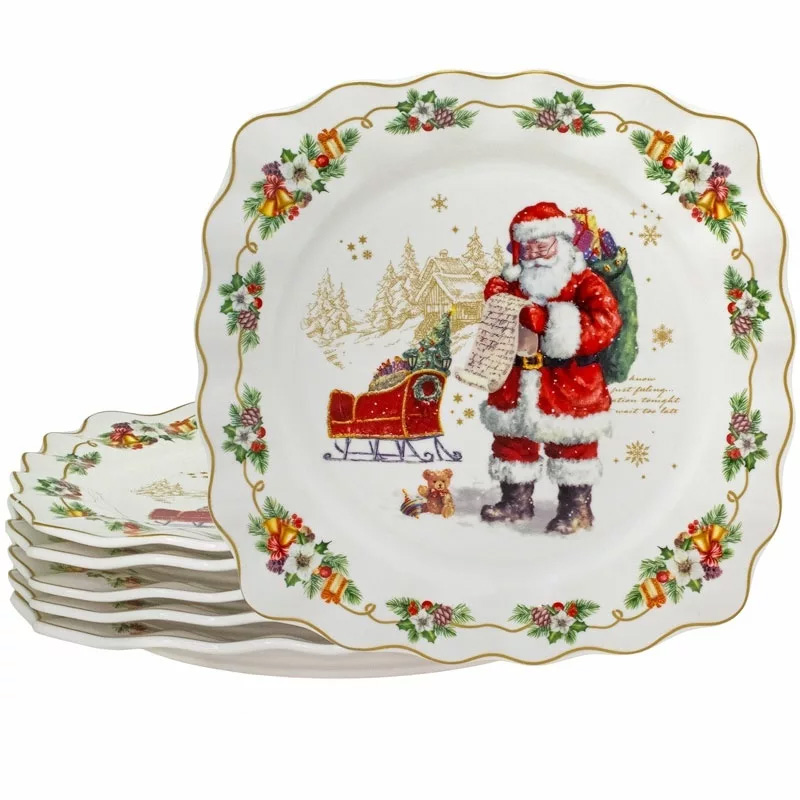 Набор из 6 тарелок 19см новый год в подарочной упаковке фарфор Lenardi