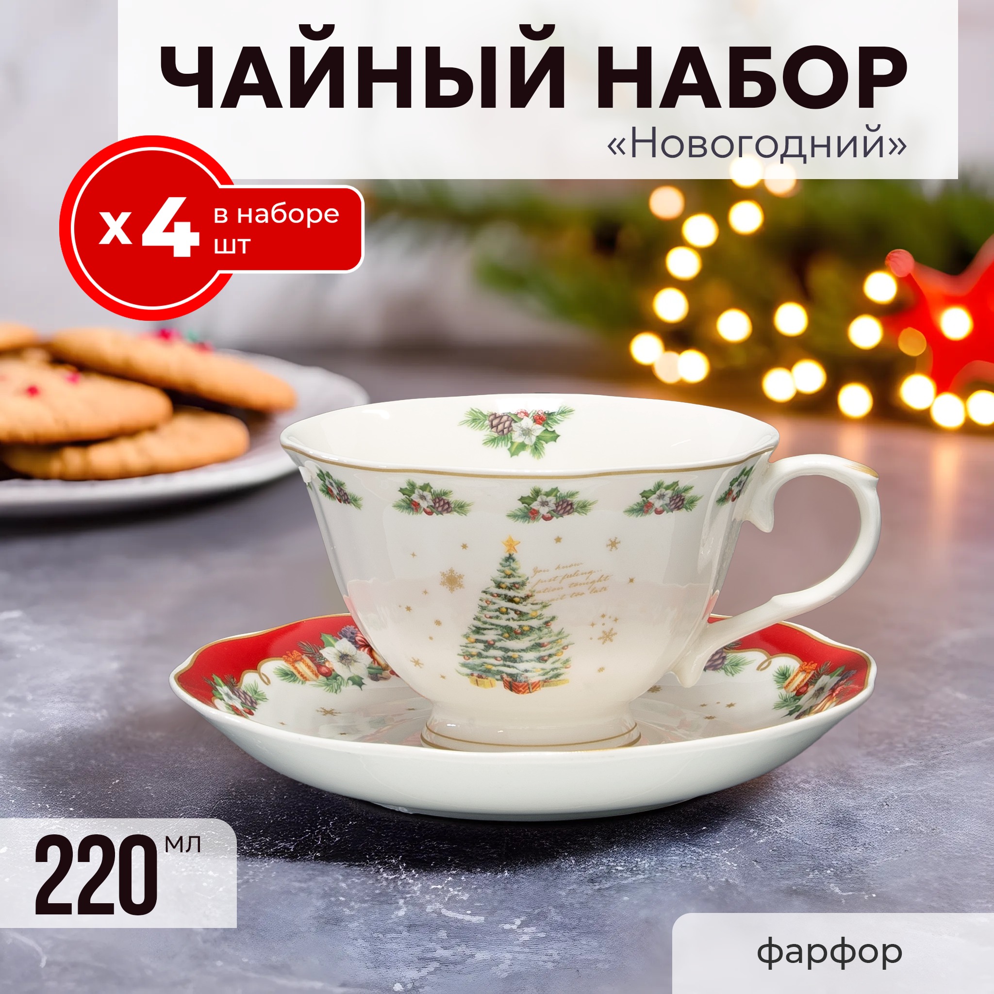 Чайный набор на 4 персоны новый год Lenardi