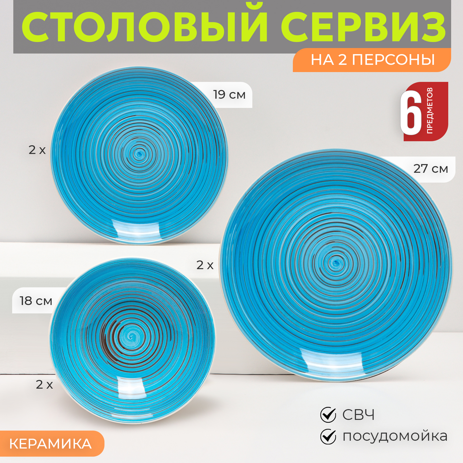 Столовый сервиз на 2 персоны набор тарелок 27 см 19 см 18 см морской вечер