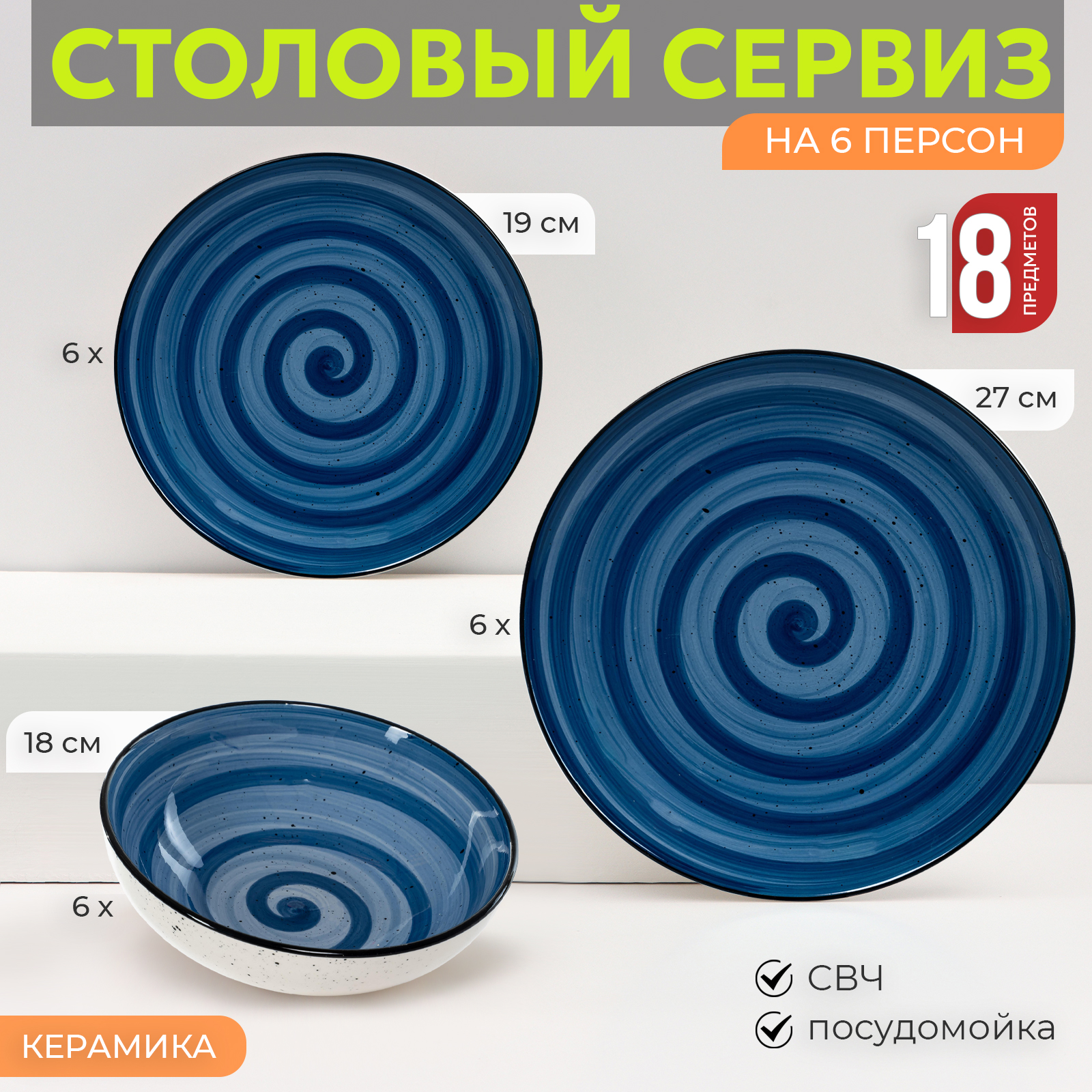 Столовый сервиз на 6 персон набор тарелок 27 см 19 см 18 см речной бриз