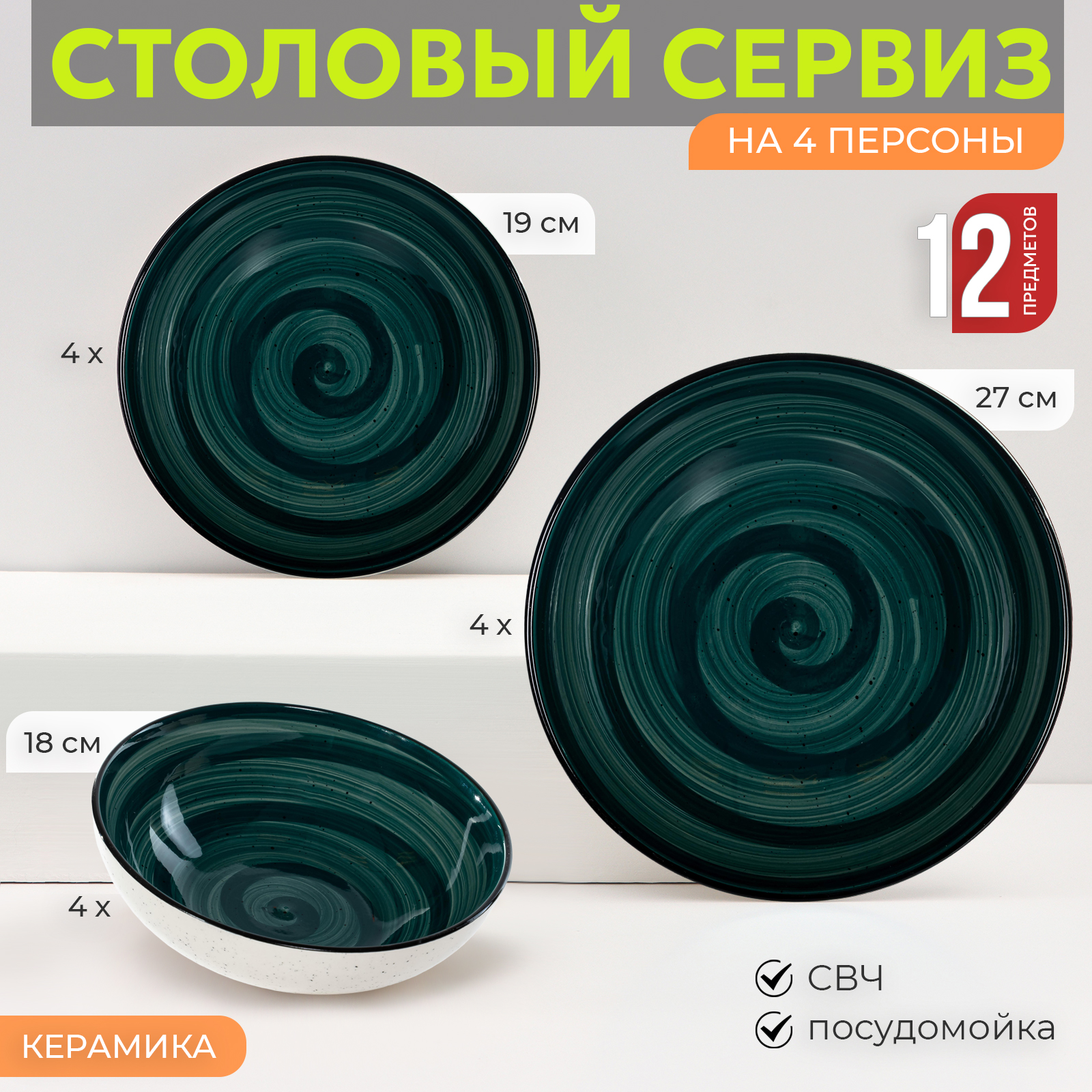 Столовый сервиз на 4 персоны набор тарелок 27 см 19 см 18 см морской бриз