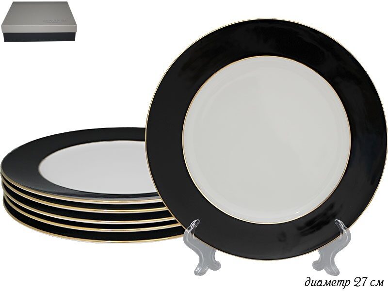 Тарелка сервировочная обеденная 27 см Lenardi Black, фарфор, столовые мелкая, закусочная, 1 шт