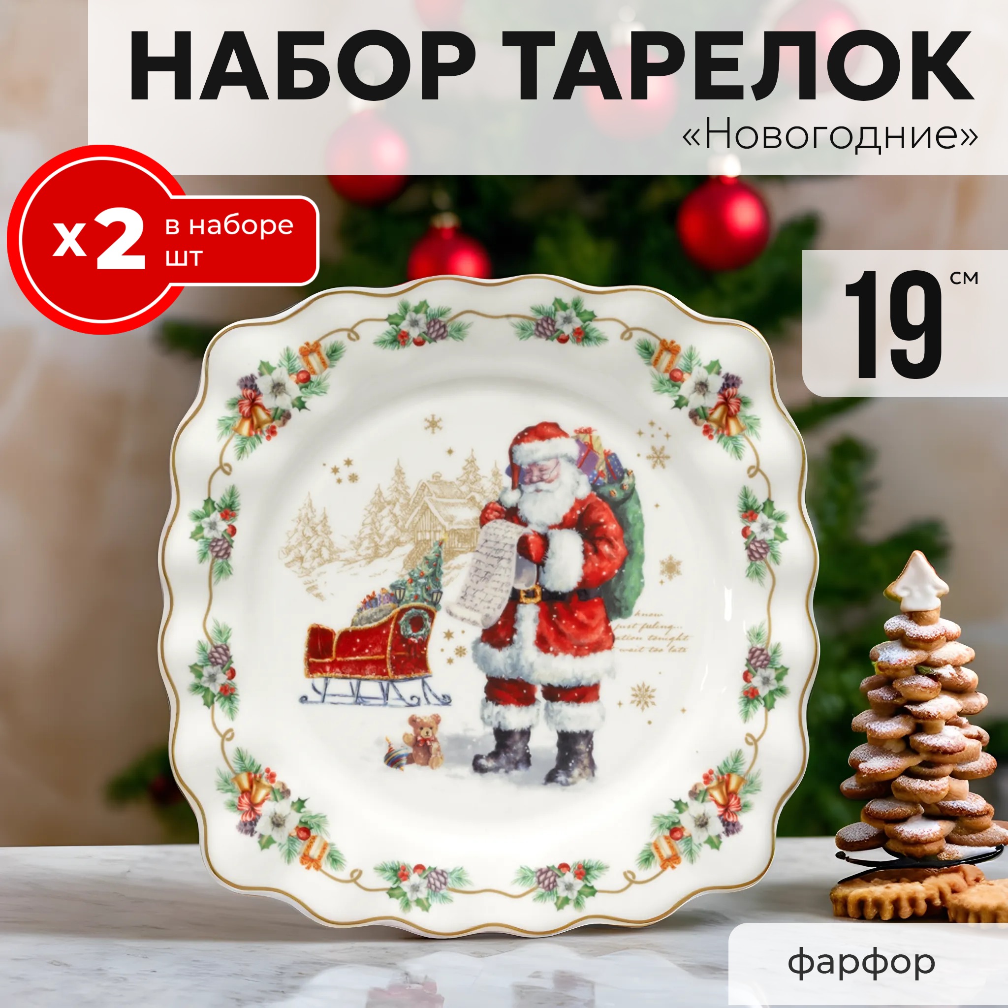 Набор тарелок 2 шт десертных закусочных 19 см на 2 персоны Lenardi новый год, фарфор, мелкие