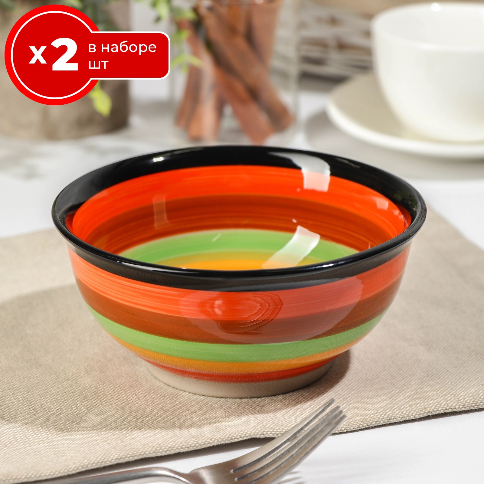 Набор салатников 2 шт доляна индия 14 см, керамика, глубокие тарелки для сервировки стола, блюда