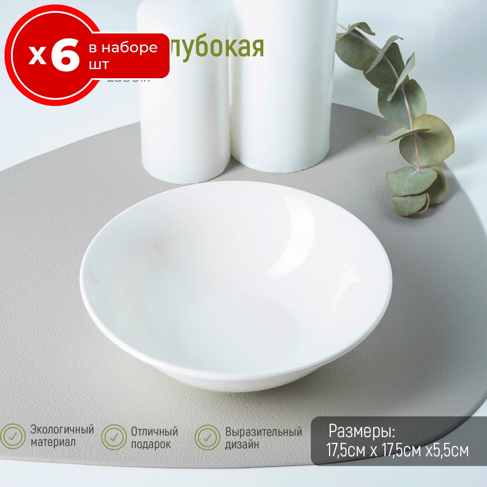 Набор тарелок 6 шт глубоких суповых 17.5 см на 6 персон доляна White Label, фарфор