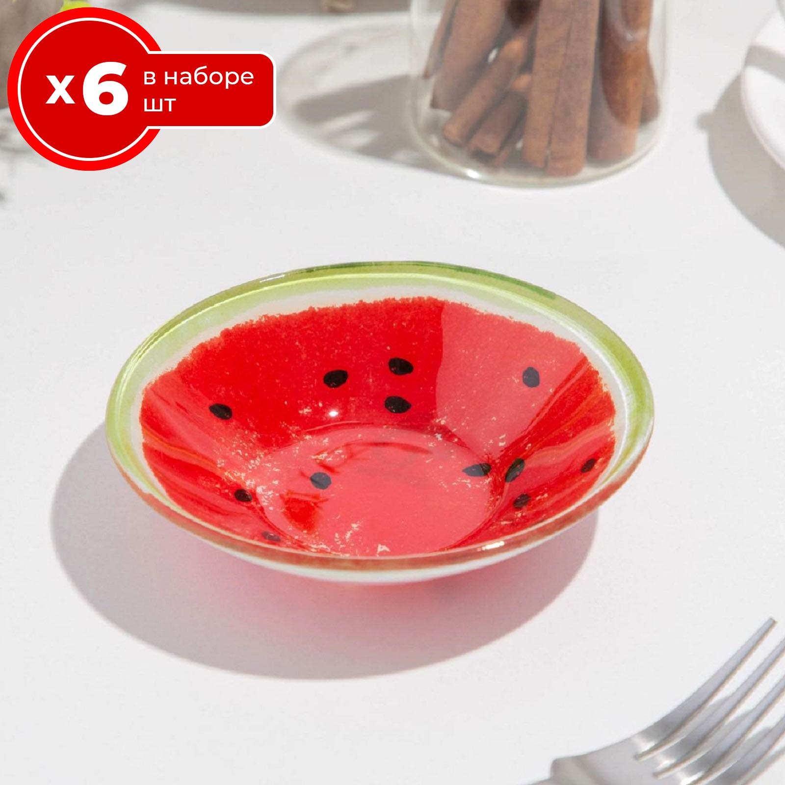 Набор салатников 6 шт доляна арбуз 12 см, стекло, глубокие тарелки для сервировки стола, блюда