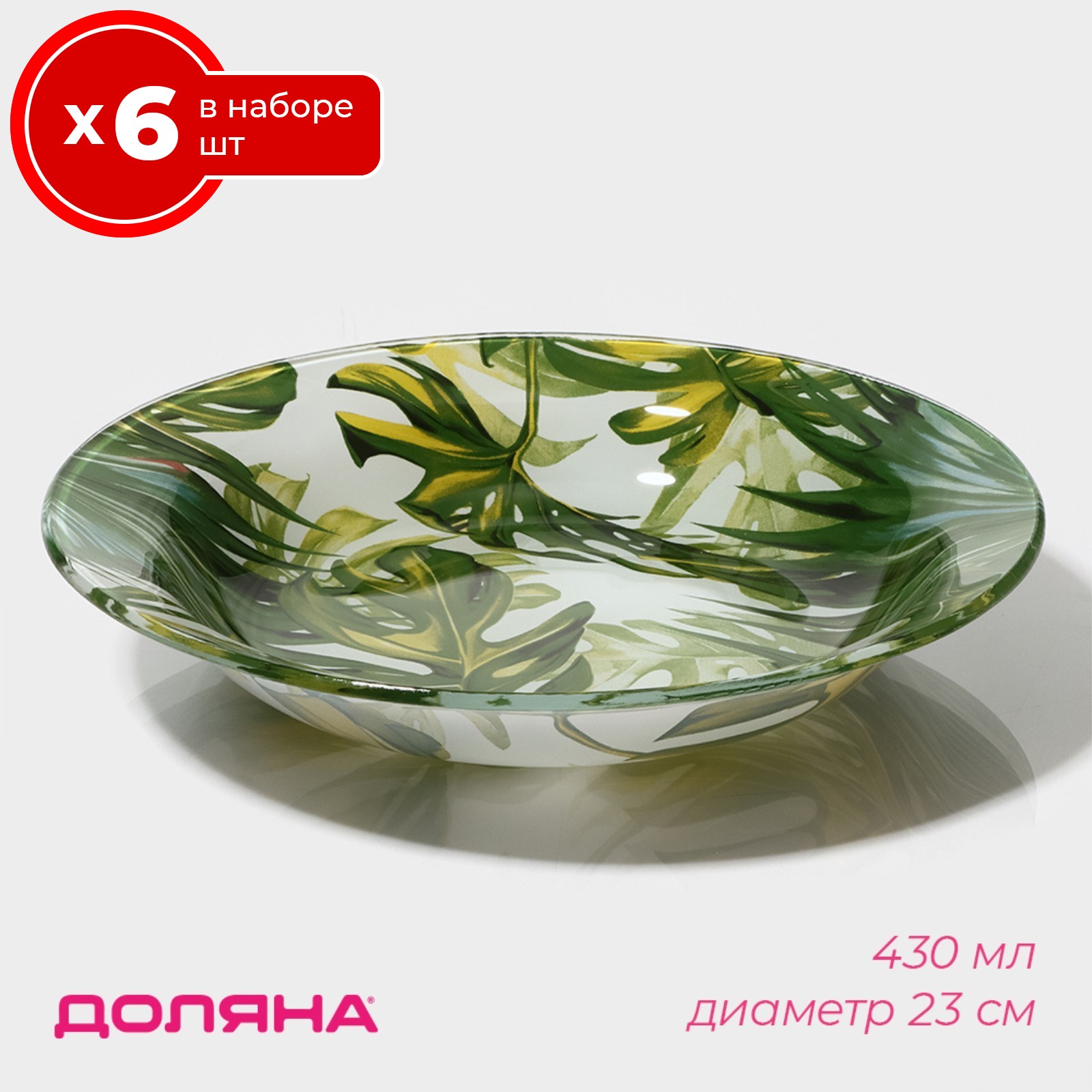 Набор тарелок 6 шт глубоких суповых 18.5 см на 6 персон доляна монстера, стекло
