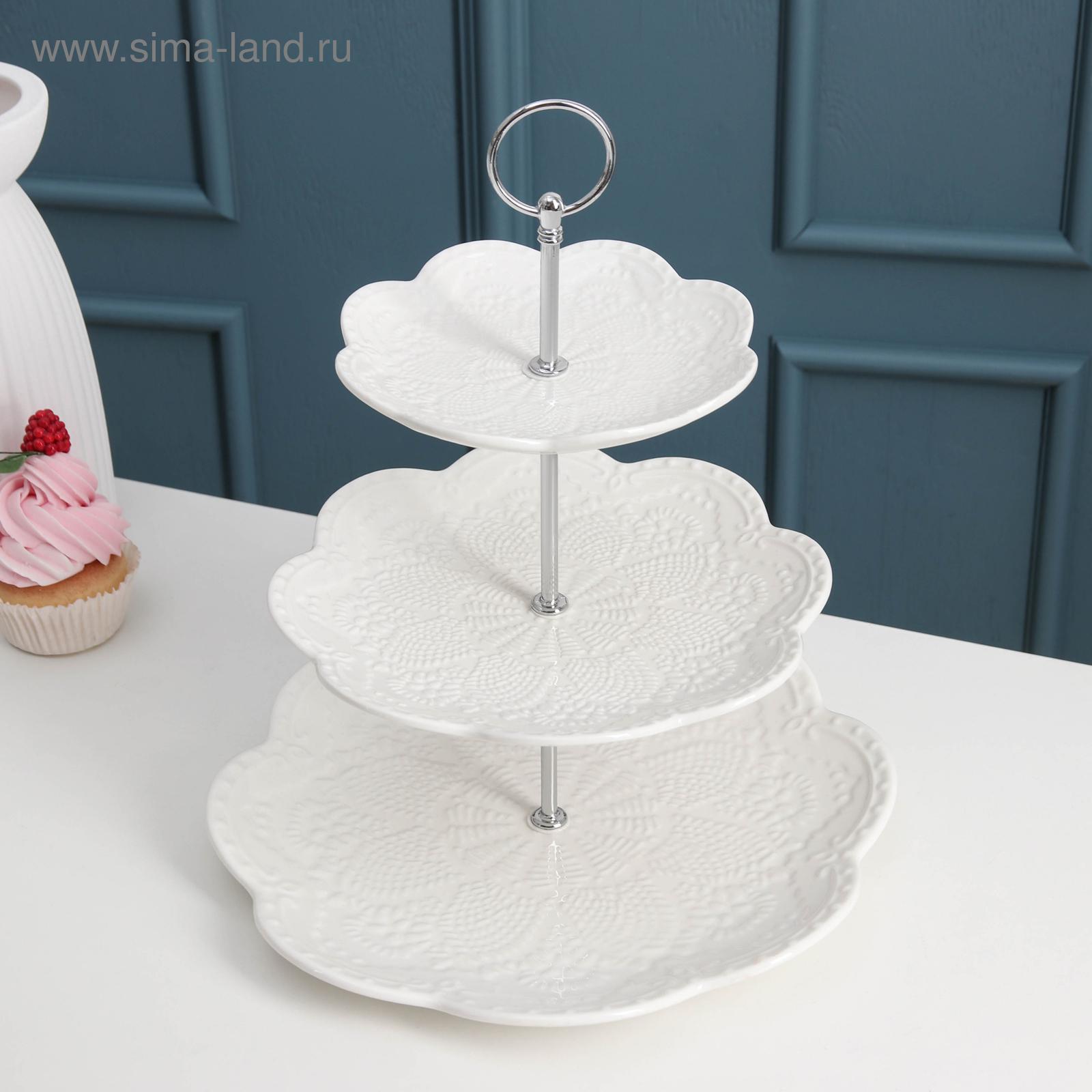 Фарфоровое 3-х ярусное блюдо Доляна «Сьюзен» придаст оригинальный вид любому столу и будет украшением при сервировке. Элегантная посуда позволит удобно и красиво разместить на столе фрукты, кондитерские изделие или различные закуски.