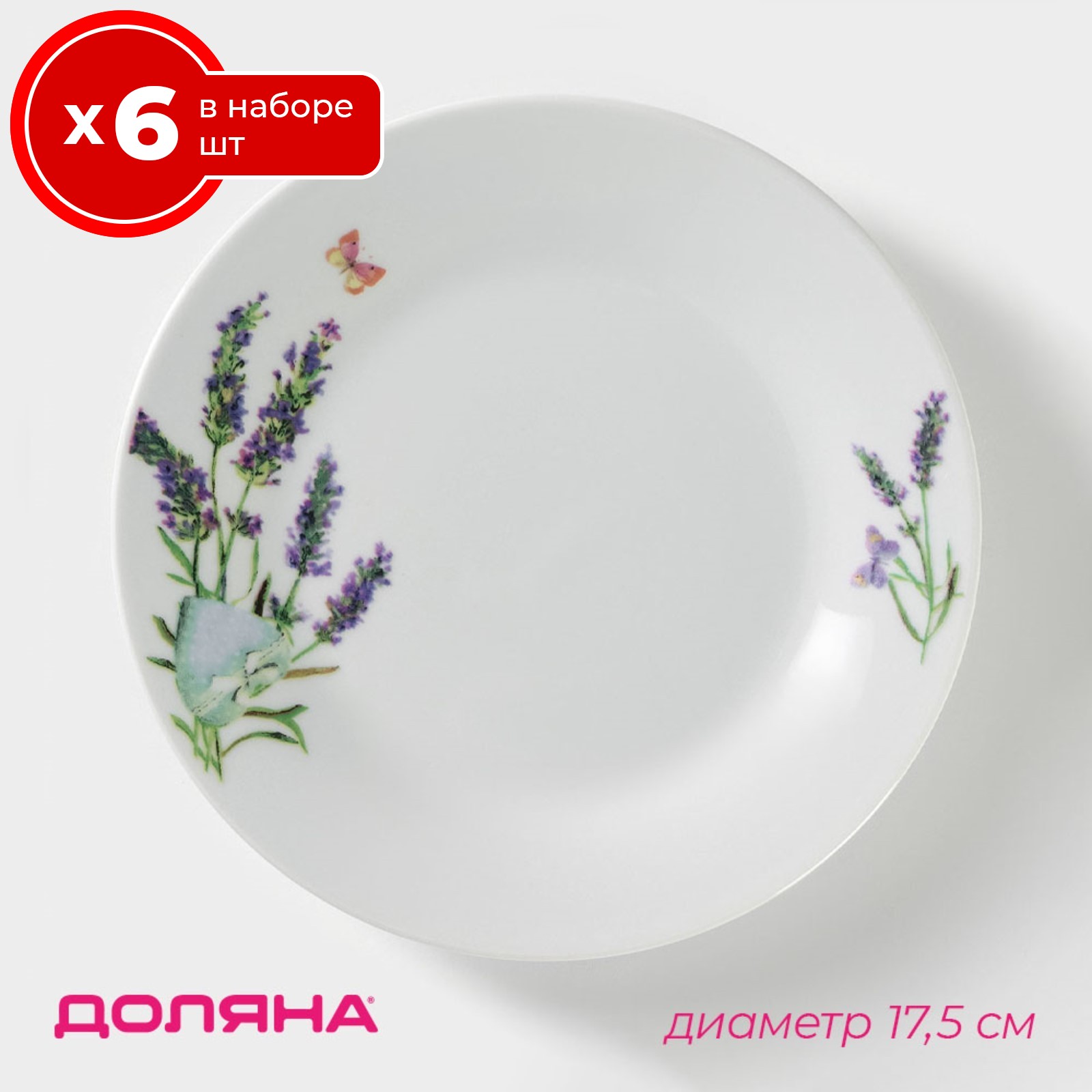 Набор тарелок 6 шт десертных закусочных 17.5 см на 6 персон доляна лаванда, керамика, мелкие