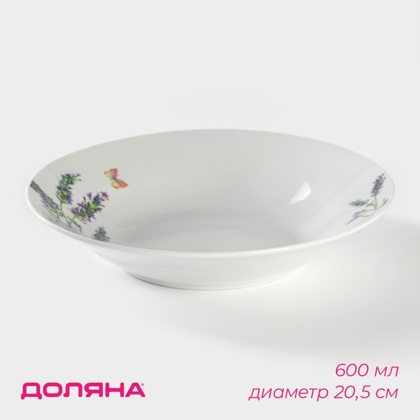 Тарелка керамическая глубокая доляна «лаванда», 600 мл, D=20,5 см, цвет белый