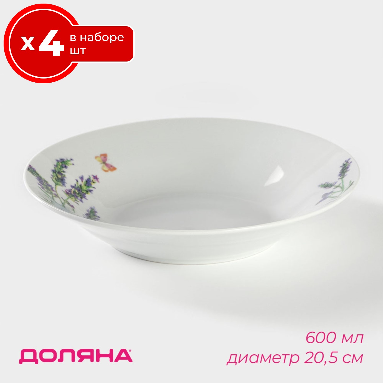Набор тарелок 4 шт глубоких суповых 20.5 см на 4 персоны доляна лаванда, керамика