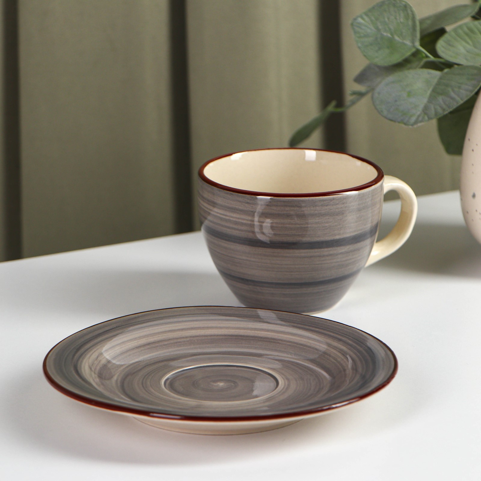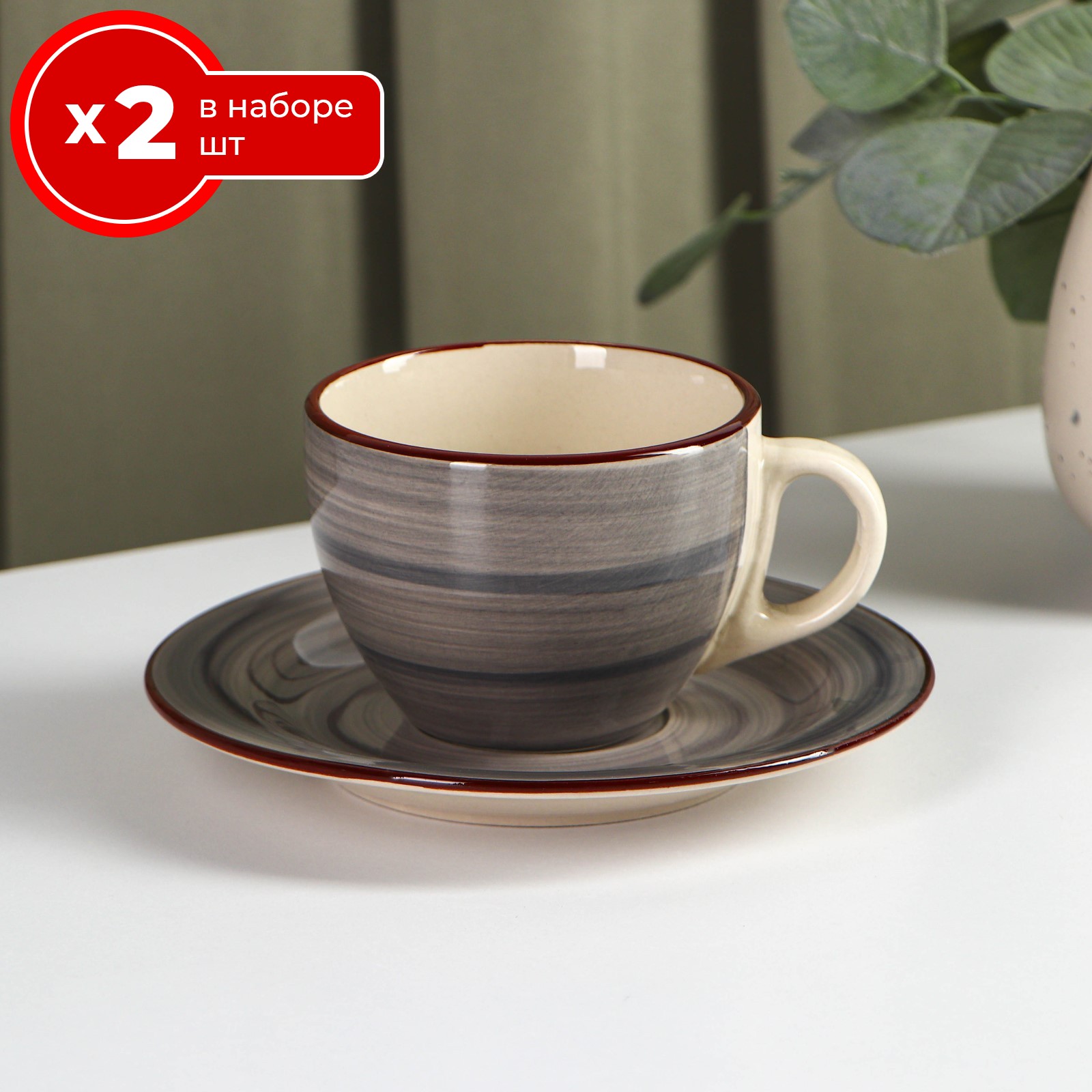 Чайный набор на 2 персоны доляна морской мир, сервиз 4 предмета: 2 шт чашки 200 мл и блюдца из керамики, подарочный