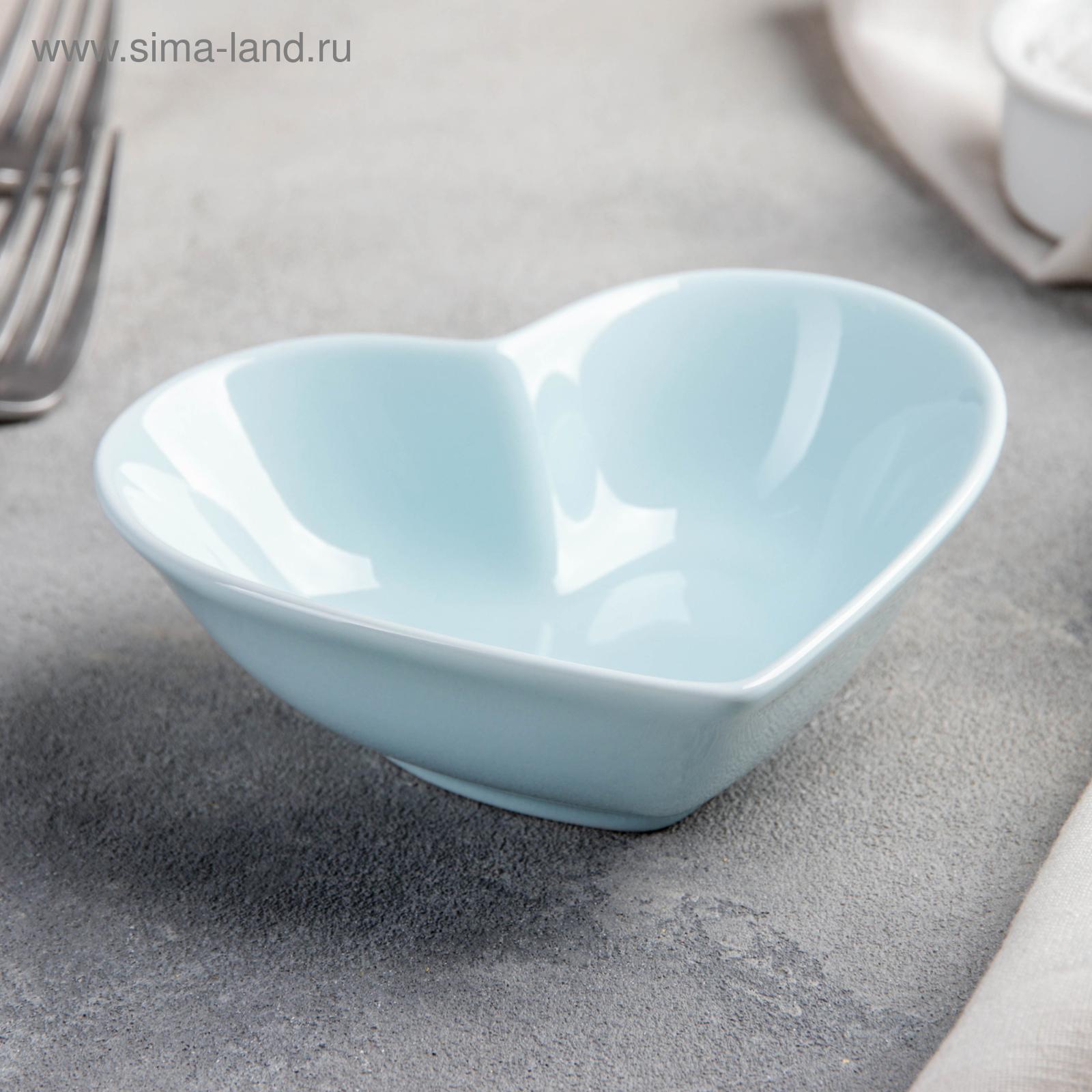 Салатник керамический доляна «сердце», 130 мл, 12,5x11,5 см, цвет голубой
