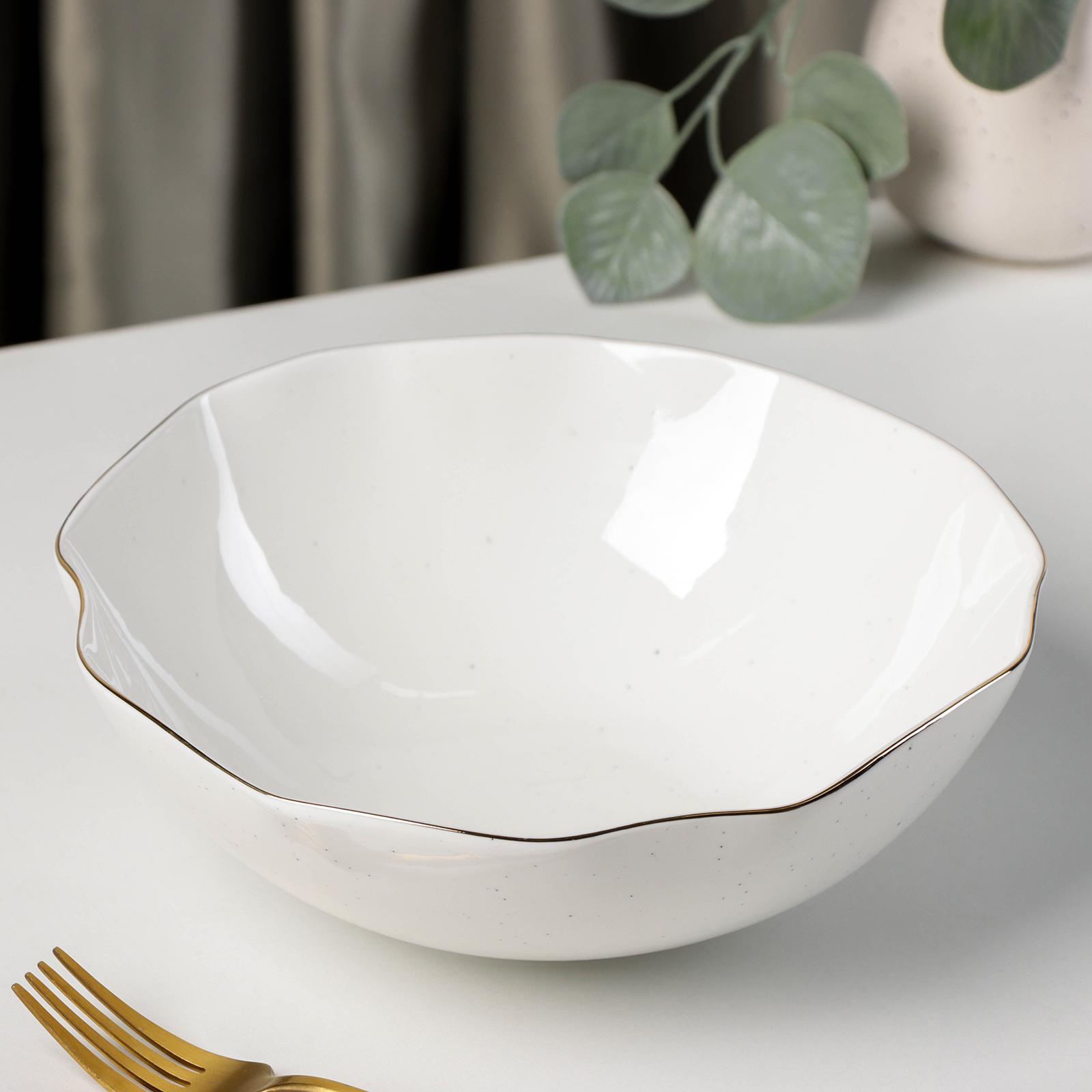 Салатник фарфоровый доляна «млечный путь», 1,4 л, D=22 см, цвет белый в крапинку