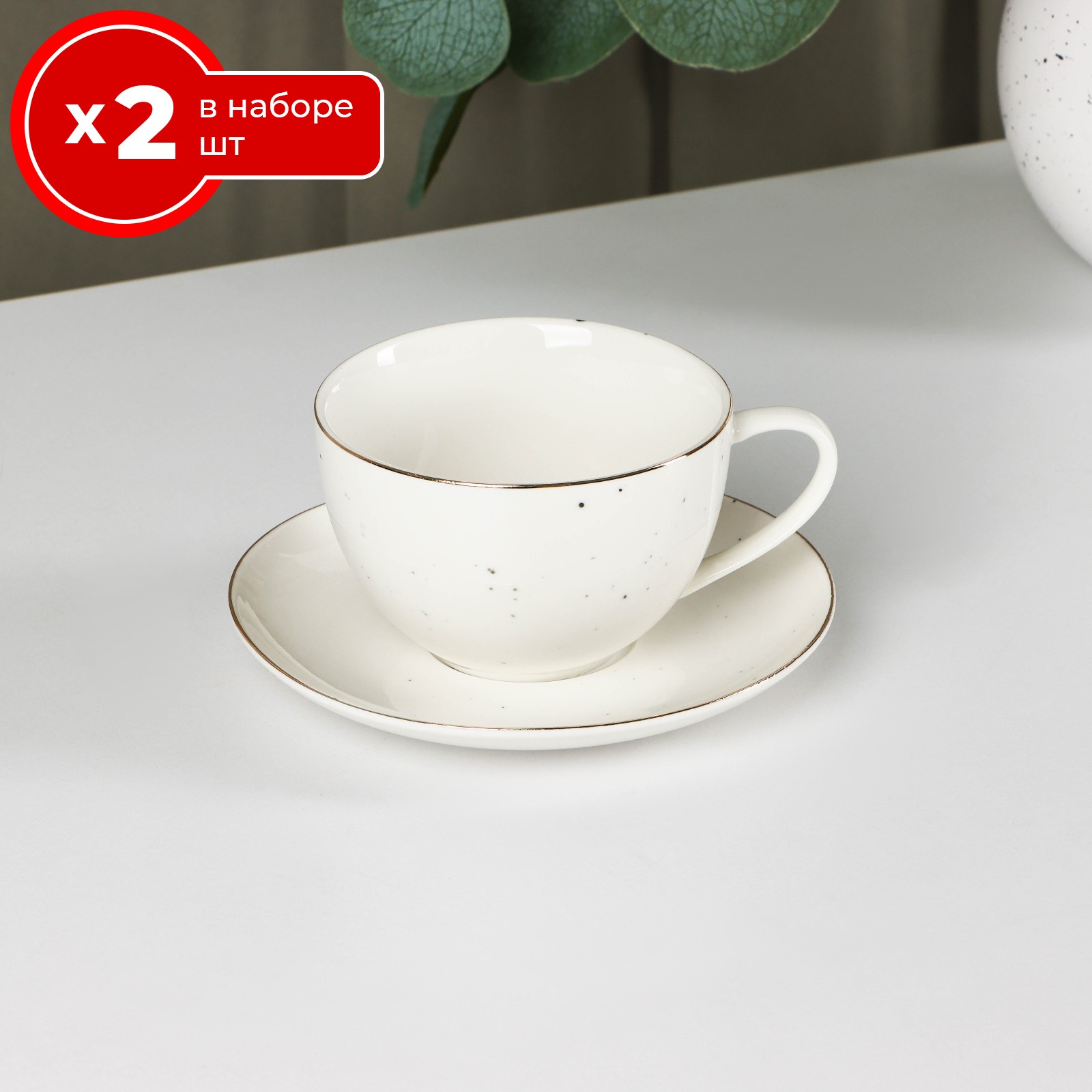 Чайный набор на 2 персоны доляна млечный путь, сервиз 4 предмета: 2 шт чашки 220 мл и блюдца из фарфора, подарочный