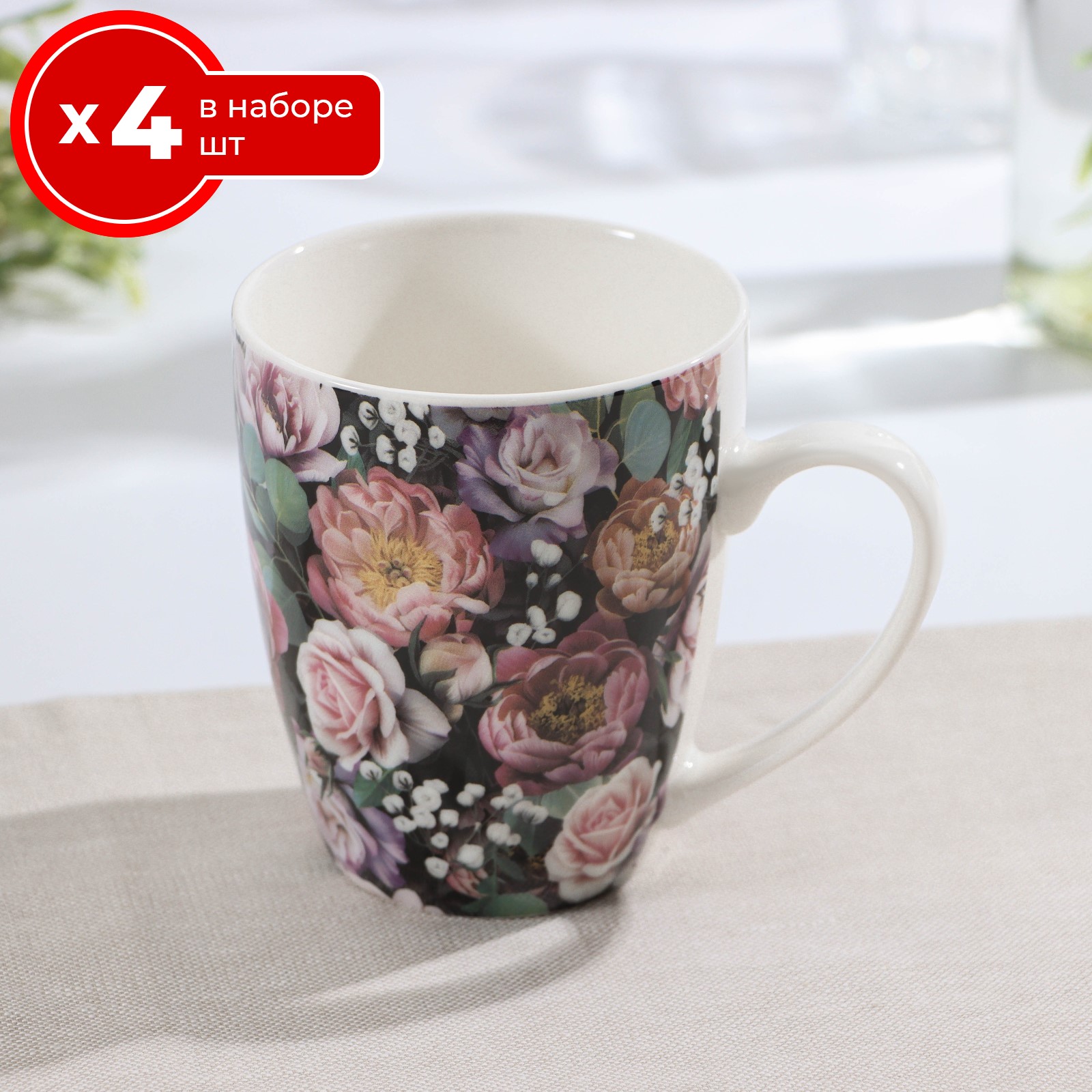 Набор из 4 кружек доляна 350 мл, новый костяной фарфор, чашки для чая и кофе 4 шт