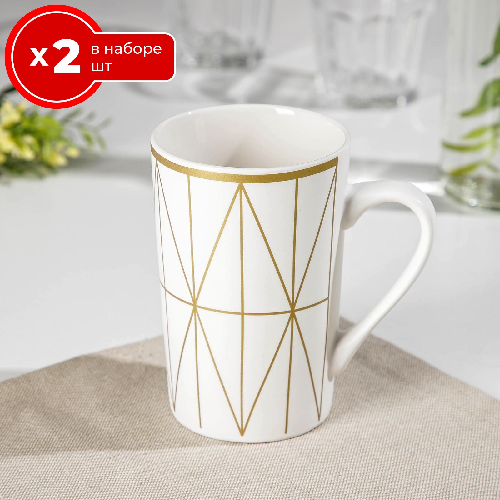 Набор из 2 кружек доляна 380 мл, новый костяной фарфор, чашки для чая и кофе 2 шт
