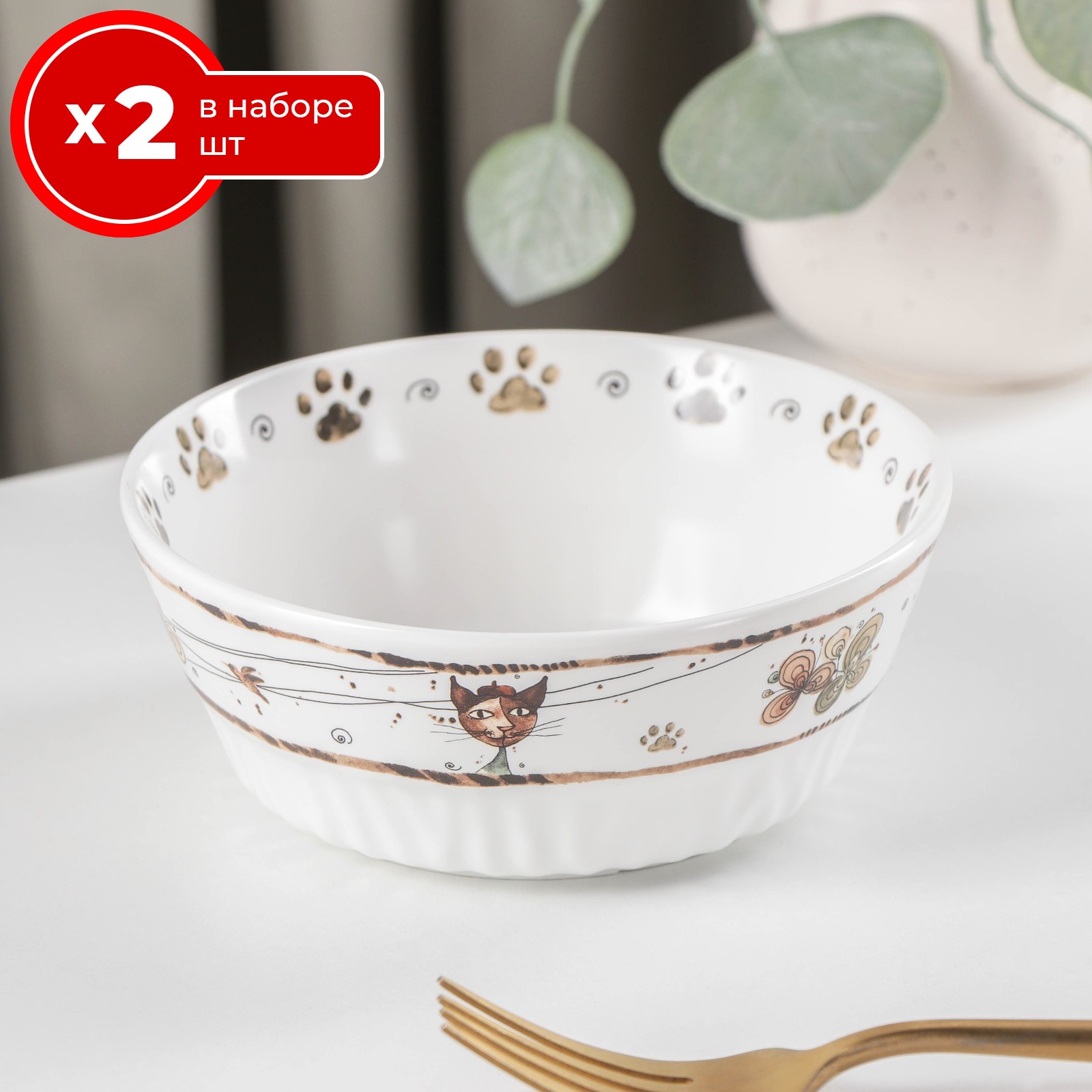 Набор салатников 2 шт доляна коты-аристократы 14 см, фарфор, глубокие тарелки для сервировки стола, блюда