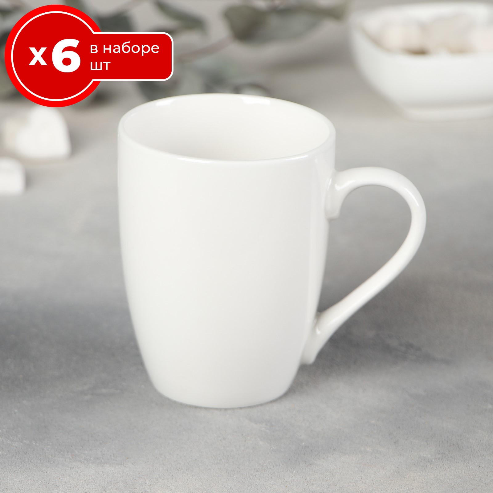 Набор из 6 кружек доляна White Label 350 мл, фарфор, чашки для чая и кофе 6 шт